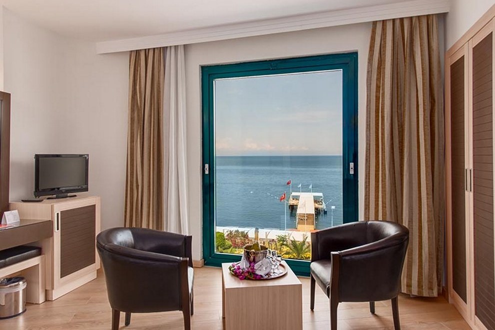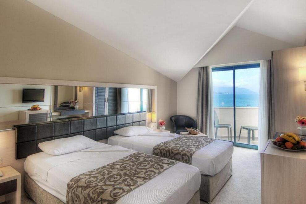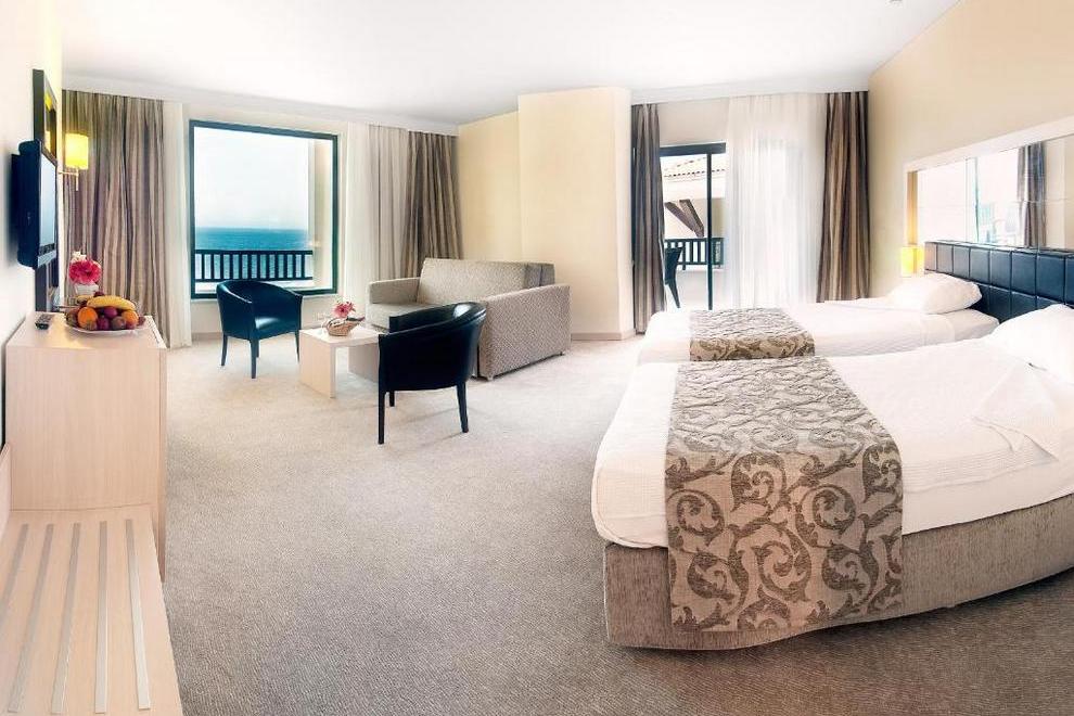 Хотелът се състои от една 4-етажна сграда, като 20% от стаите са с изглед към морето. Посреща гостите си в 130 климатизирани стаи, в които има сателитна телевизия, телефон, баня с вана, сешоар, сейф (платен), минибар, балкон с градинска мебел, WI-FI. Някои помещения за настаняване разполагат с кът за сядане за отдих след активен ден. Стаите се почистват ежедневно, смяна на спалното бельо три пъти седмично.