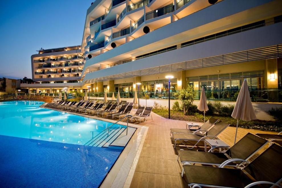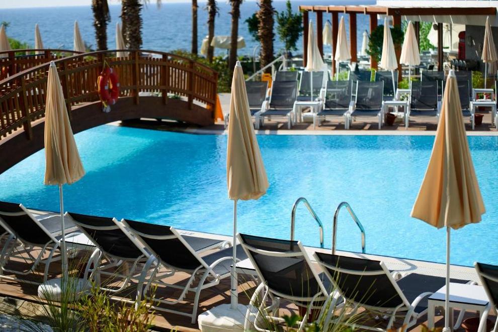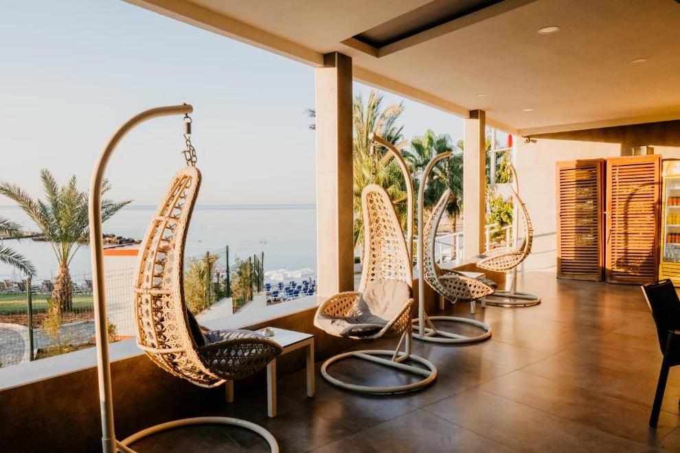 Хотелът има собствен пясъчно-чакълест плаж. За удобство на своите гости хотелът предлага също открит плувен басейн и басейн със СПА тераса, както и тераса за слънчеви бани.