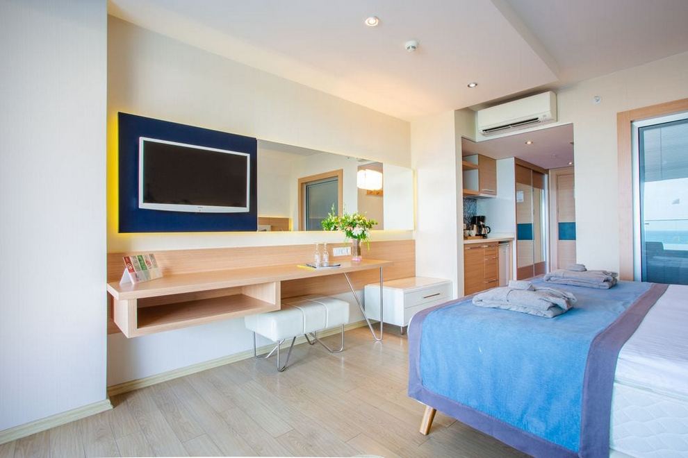 Хотелът посреща своите гости в общо 226 стаи, включително 221 стандартни стаи, 3 апартаментни стаи и 2 стаи за инвалиди. Всички стаи са с тераси, а подовете са ламинирани. Минибар, сейф, сешоар, душ, телевизор, телефон и бойлер са стандартни в стаите. В стаите е осигурен безжичен интернет. Ежедневно почистване на стаите.