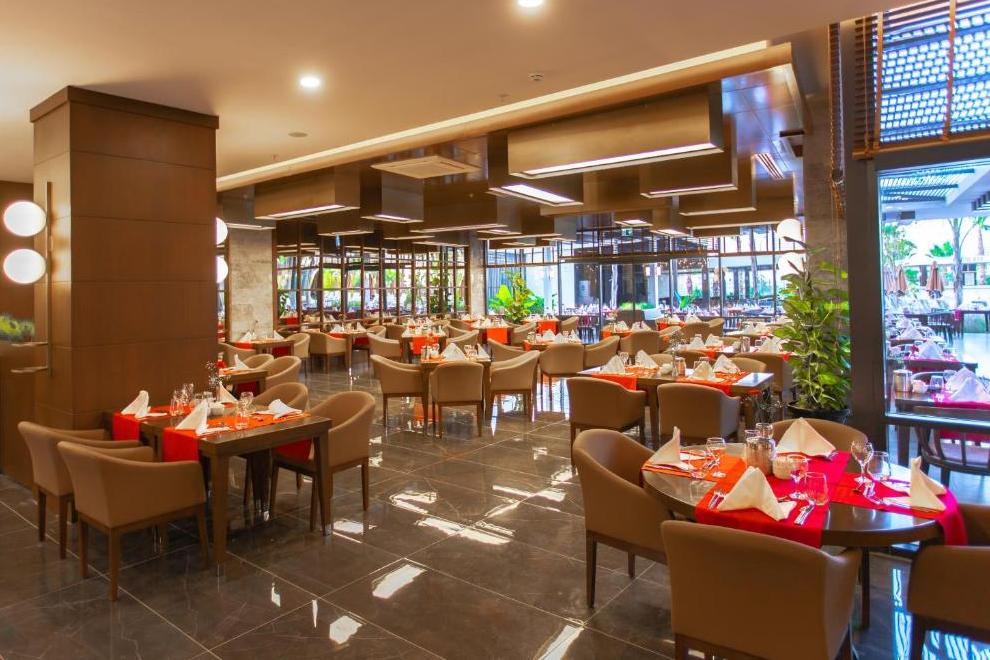 Хотелът има основен ресторант, в който се предлага и диетично и вегетарианско меню. Един а`ла карт ресторант, който предлага средиземноморска кухня. Има и сладкарница. В баровете на хотела се поднасят разнообразни напитки.