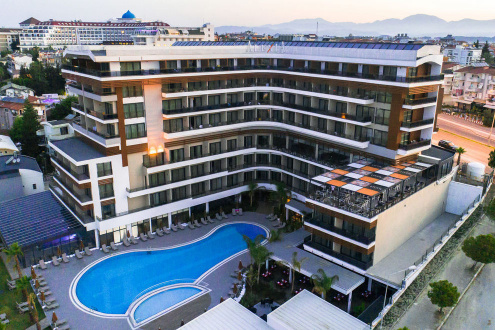 Хотелът се намира на 150 м от морето и на 600 м от центъра на Сиде. Летище Анталия отстои на 60 км. Хотелът работи с концепция Adults Only 16+.