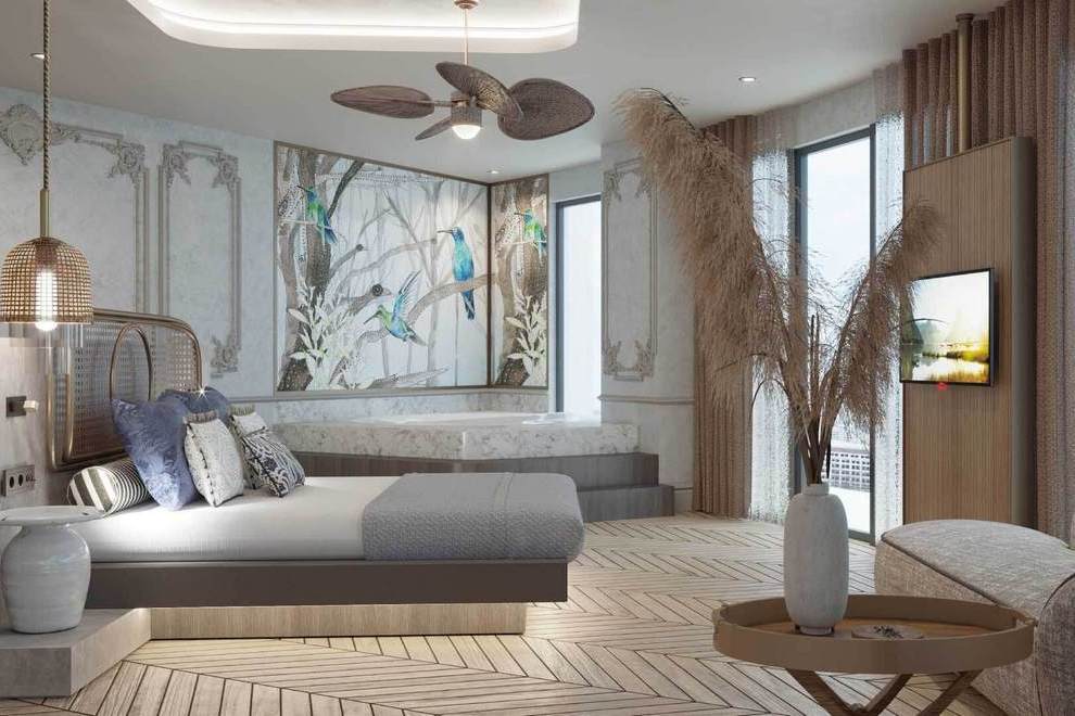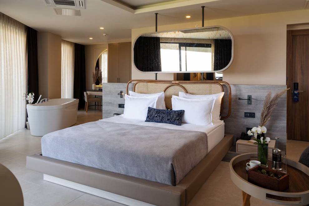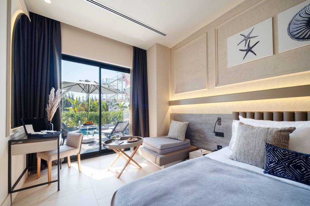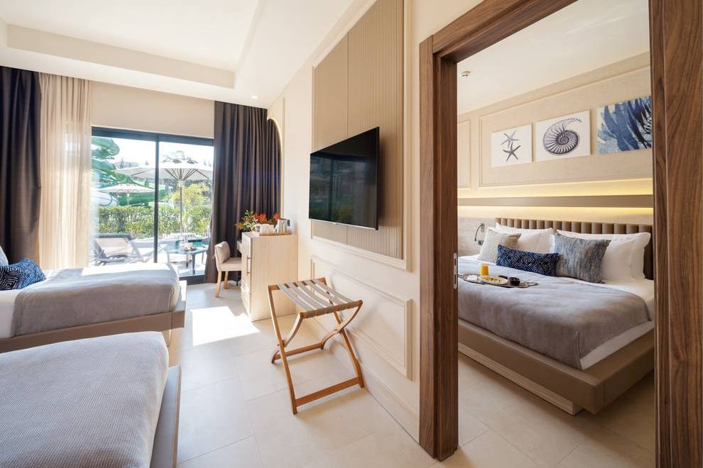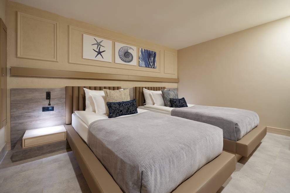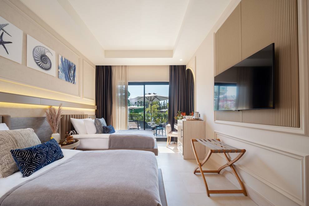 Хотелът се състои от 5 четириетажни сгради и една двуетажна основна сграда, в която са разпределени 375 стаи, от които Deluxe Promo Room (изглед – суша, 25 кв.м), 229 Deluxe Land View Room (изглед – суша, 25 кв.м), 52 Deluxe Pool View Room (изглед – басейн, 25 кв.м), 37 Deluxe Side Sea View Room (страничен изглед към морето, 25 кв.м), 20 Deluxe Swim Up Room (директен достъп до басейн - 25 кв.м), 6 Deluxe Lagoon Room (директен достъп до басейн - 25 кв.м), 24 Family Room (2 отделни спални, 1 баня - 55 кв.м), 10 Superior Corner Room (1 спалня, 1 баня с душ и вана - 45 кв.м), 1 King Suite (1 спалня, кът за сядане, 1 баня, вана - 180 кв.м). Елегантно обзаведените стаи имат климатик, сателитна телевизия, телефон с директно избиране, кът за сядане, минибар, сейф, машина за кафе/чай във всички стаи, баня с душ или вана, с биде, халати и чехли, сешоар, балкон.