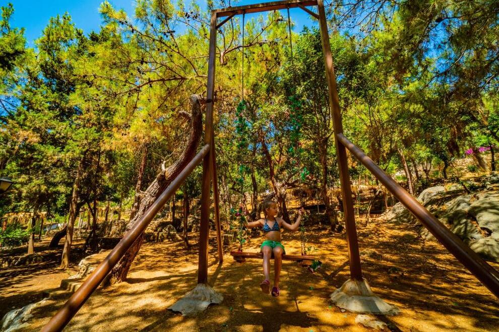 Собствен частен пясъчно-чакълест плаж, до който се стига с фуникуляр или пеша по стълби. Бар на плажа. Има и 1 открит басейн с площ 550 кв.м, 1 релакс басейн с площ 280 кв.м и 1 басейн с пързалки с площ 64 кв.м.
