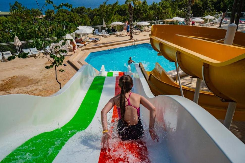 Хотелът разполага със собствен частен пясъчно-чакълест плаж. Има и 2 открити басейни, водни пързалки.