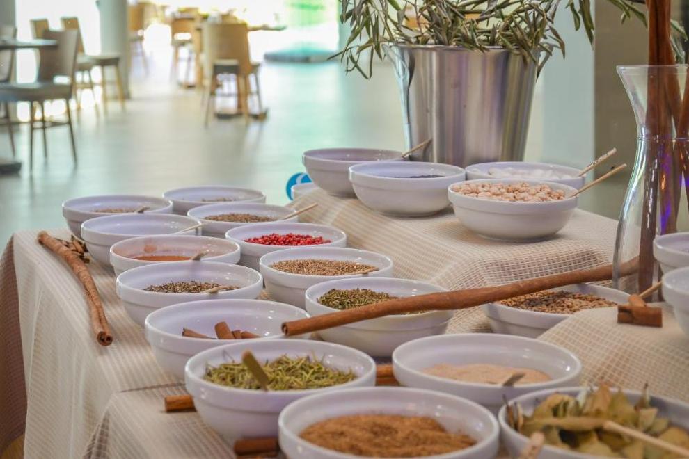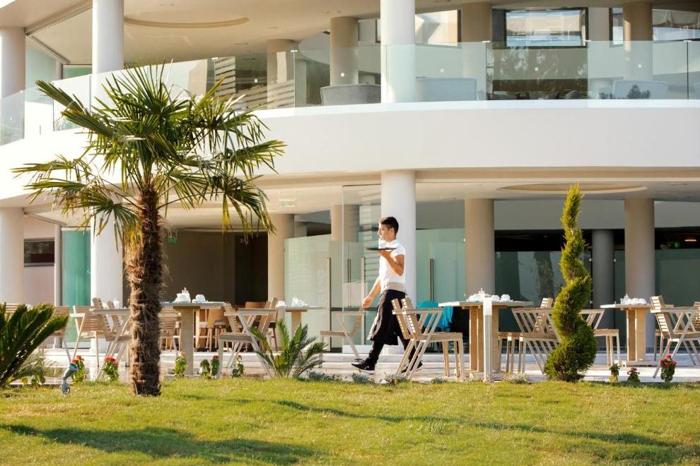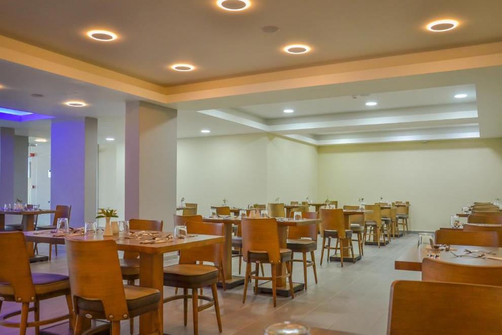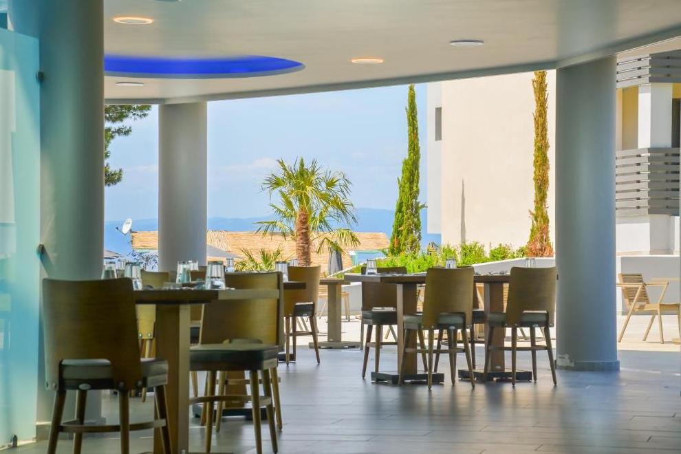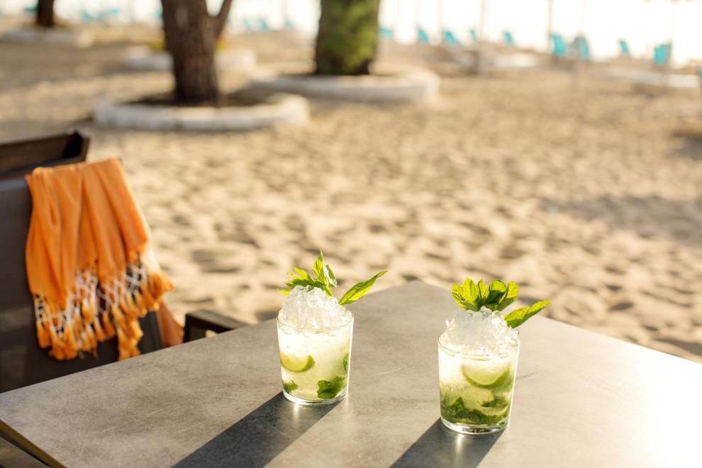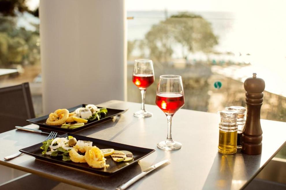 Хотелът разполага с три ресторанта - бюфет ресторант с гръцка кухня, а`ла карт с италианска кухня на покрива и ресторант с морска храна на плажа. В лоби бара, бара на плажа и бара на басейна се поднасят разнообразни освежаващи напитки.
