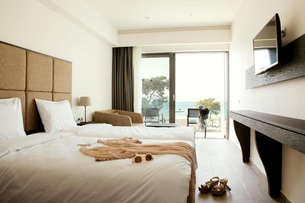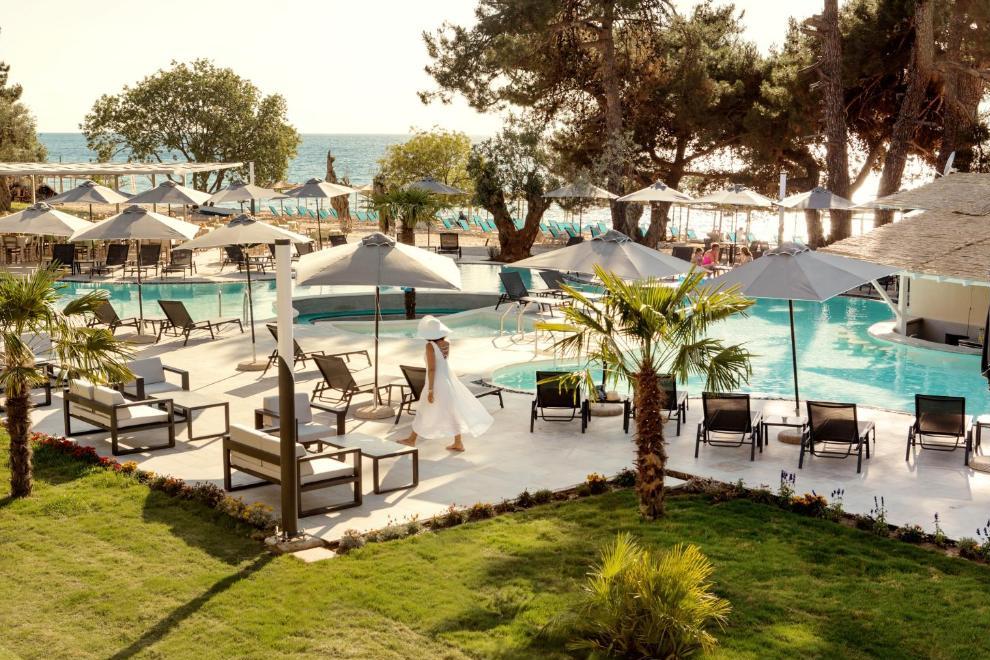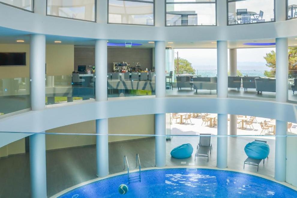 Хотелът има пясъчен плаж, за удобство на гостите предлага открит и закрит (отопляем) басейн. Чадъри и шезлонги на плажа - безплатно.