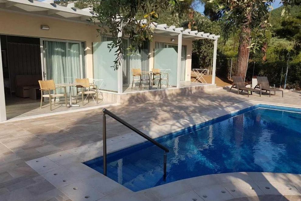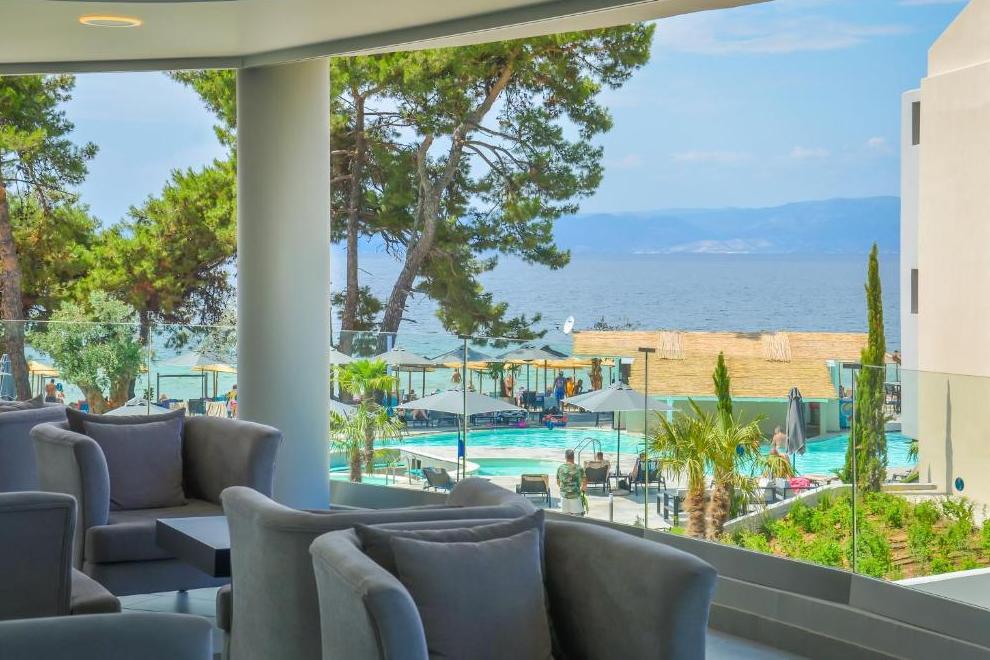 Заобиколен от борова гора, хотелът е близо до плажа Пахис. Центърът на курортно селище Скала Рахони е на 2,5 км, а пристанището в Лименас отстои на 10 км.