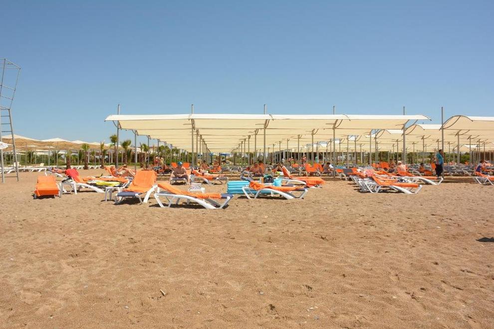 Хотелът има собствен, пясъчно-чакълест плаж на 300 м от хотела, автобусът до плажа тръгва на всеки 15 минути. На разположение на гостите са 2 открити басейна (неотопляеми), 1 закрит басейн (отопляем 1/11-30/04), 100 кв.м. 5 водни пързалки (1 за деца), неотопляеми, работно време 10:00 - 12:00 ч., 14:00-16:00 ч. Чадъри, шезлонги и матраци на плажа и при басейните се предоставят безплатно.