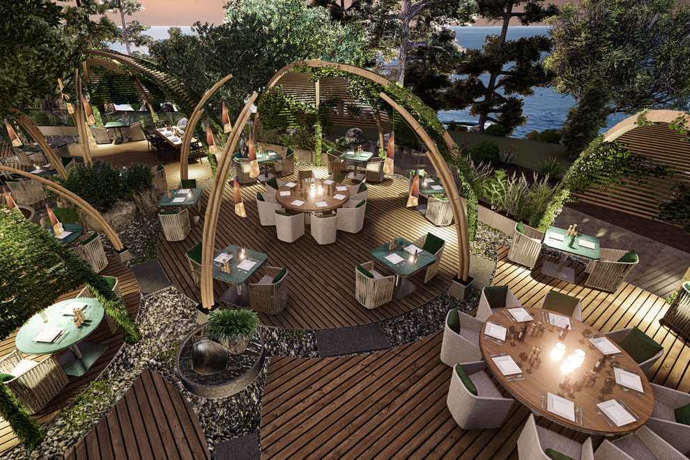 Хотелът се намира на първа линия и има собствен плаж, носител на Син флаг, с платформа и частна платформа само за гости на вилите. И двете платформи са Adults Only. На разположение на гостите са два открити басейна, Rixy аквапарк, водни пързалки и тераса за слънчеви бани. Чадъри, шезлонги и матраци на плажа и при басейна се ползват безплатно, плажни кърпи – срещу депозит.