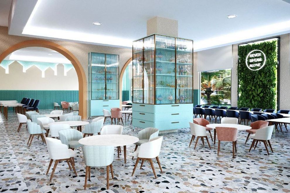 Хотелът има основен ресторант A La Minute/Turquoise, 3 а`ла карт ресторанта - рибен Kalamata; италиански L`olivo; азиатски Umi Teppanyaki ;1 снек ресторант; 1 ресторант за гости на вилите Cleopatra. Гостите могат да опитат освежаващи напитки и леки закуски в 8-те бара - 24-часов лоби бар, бар на плажа, бар при басейна, нощен бар, бар на кея, арт бар, нощен клуб, винен бар. Има също 1 сладкарница, Street food щандове, детски ресторант в Rixy Kids Club. ALL INCLUSIVE ALL EXCLUSIVE концепцията включва закуска, обяд, вечеря и междинни хранения на шведска маса, алкохолни и безалкохолни напитки местно производство и някои вносни - без лимит (съгласно концепцията на хотела). Включени премиум напитки: уиски, коняк и бренди, водка, текила, ром, ликьор, бира.