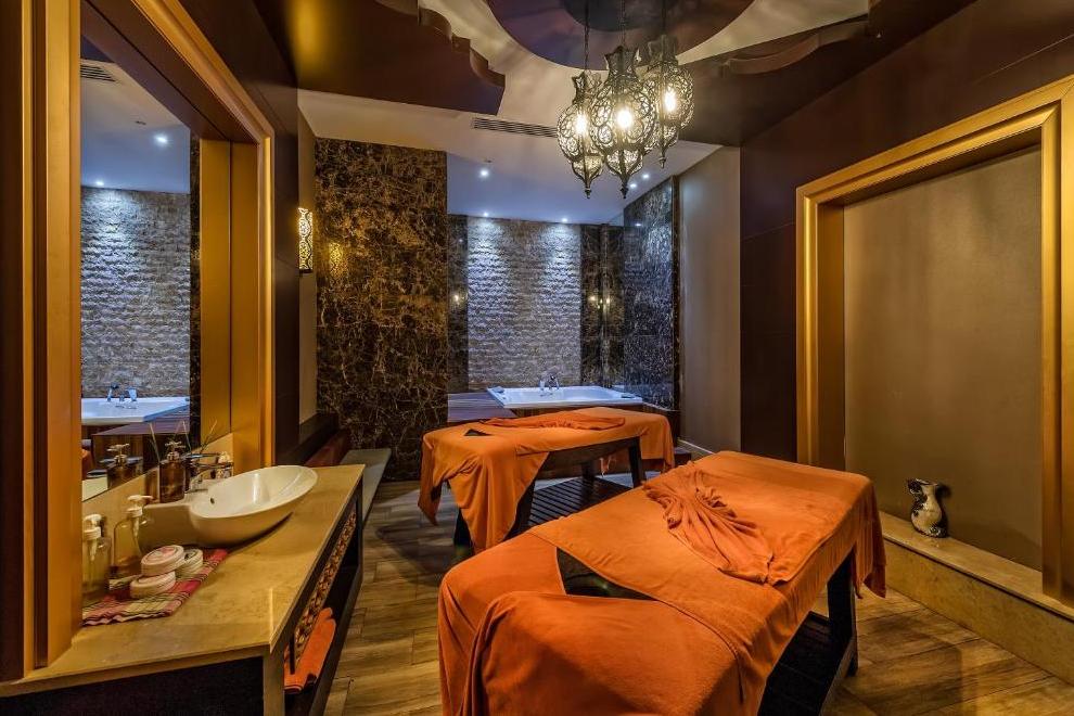 За бебетата: пакет Baby Star - бебешка вана, шампоан, лигавник, лосион за тяло, бебешко шише, нагревател за бебешко шише, мокри кърпички и бебешки играчки, наем на бебешка количка. Хотелският комплекс предлага СПА и уелнес център. Има също сауна, турска баня и фитнес център. Гостите могат да участват в различни дейности като голф и кану. Още - анимация, тенис на маса, баскетбол, дартс, плажен волейбол, водни колела. Срещу заплащане - билярд, боулинг, масаж, водни спортове, пералня. За децата има 3 водни пързалки, детски басейн.