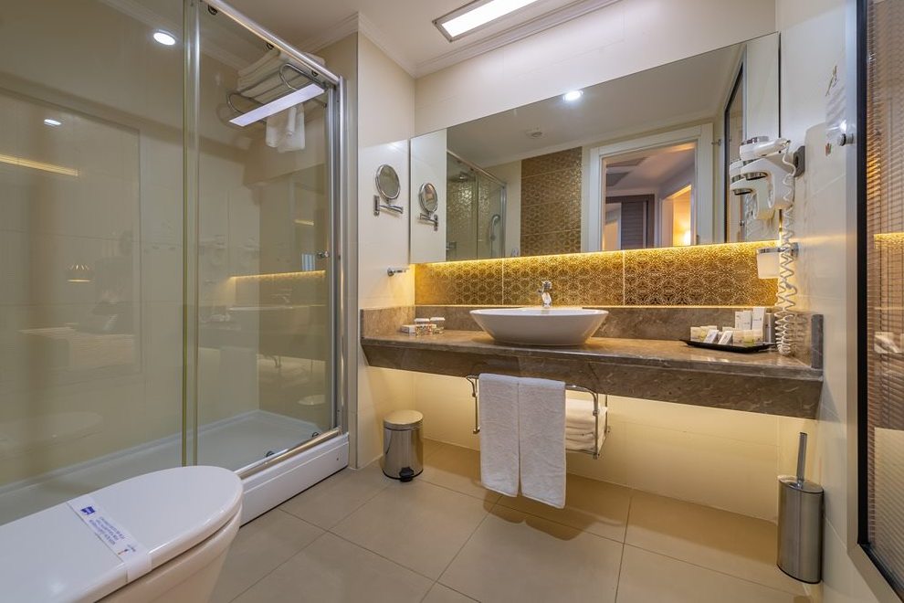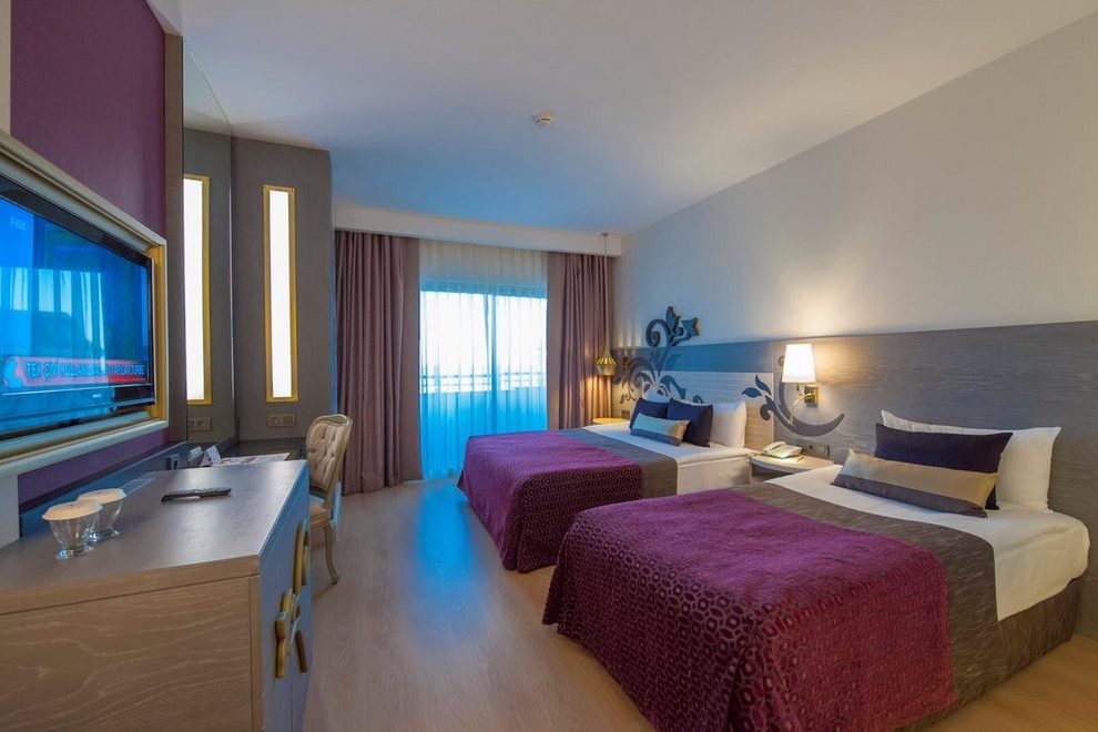 Standard Side Sea View Room има Едно двойно и едно единично легло, балкон, душ, WC, сешоар, телефон в стаята и банята, халат, чехли, меню за възглавници, цифрова сателитна и LCD телевизия, бебешко креватче (при поискване), ламиниран паркет, безплатен сейф, минибар (ежедневно зареждан с бира, вода и безалкохолни напитки; чипс и шоколад в деня на пристигане), електрическа кана (комплект за чай и кафе), централен климатик, безплатен безжичен интернет (Wi-Fi), безплатно ежедневно почистване, комплект за зъби, комплект за бръснене, гребен, пила за нокти, ръкавица за баня, памучни тампони, душ гел, лосион за тяло, шапка за душ, сапун, шампоан, клечки за уши, кутия за салфетки, ножица за обувки и комплект за шиене. Площ 29 кв.м, максимално настаняване: 2+1 или 3 души.