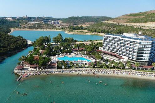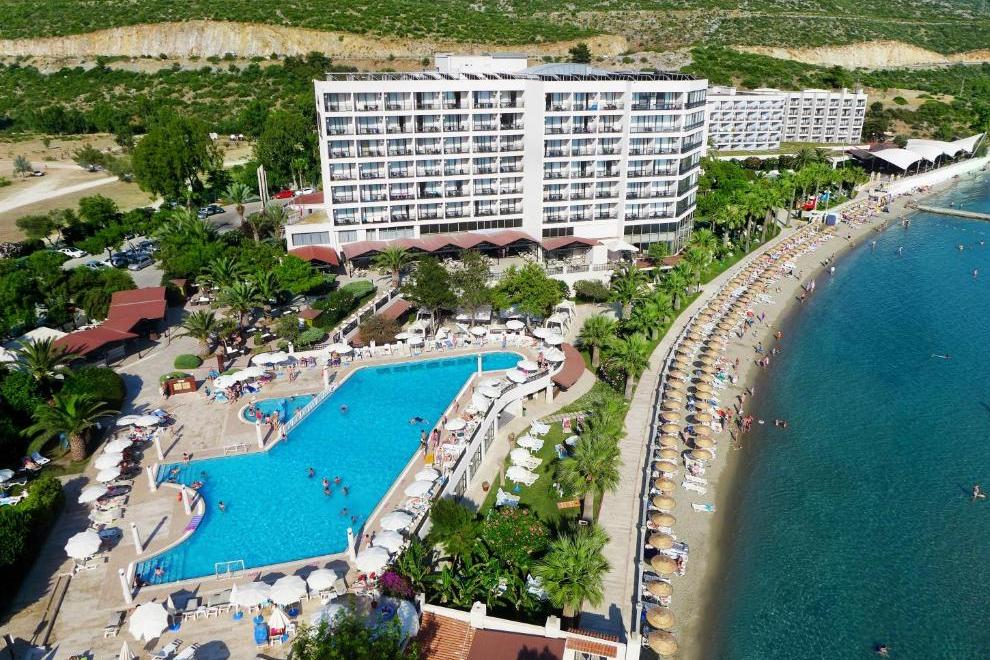 Tusan Beach Resort се намира на брега на морето, сред зеленината на градина и с чудесна гледка към морето. Летище "Милас" отстои на 110 км от хотела, центърът на Кушадасъ и на 5 км.