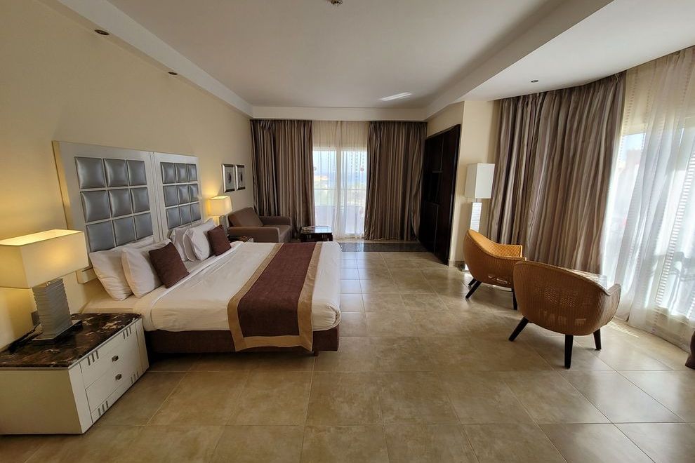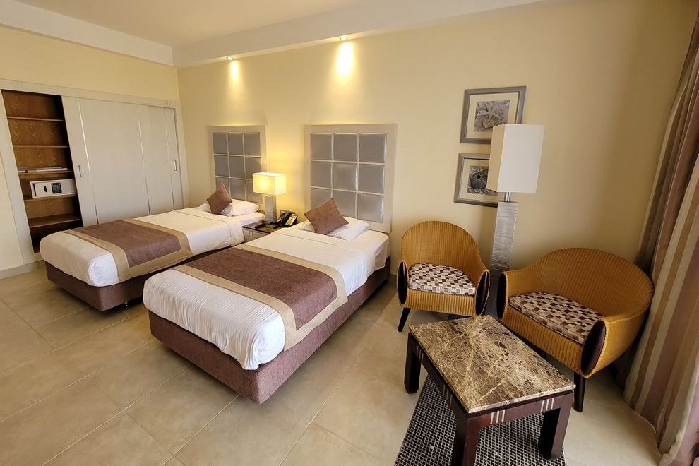 Местоположение Хотелът се намира на брега на Червено море, в района на Сал Хашиш. Центърът на Хургада е на 30 км, а международното летище отстои на 25 км. Построен през 2011 г., хотелът последно е реновиран през 2020 г.