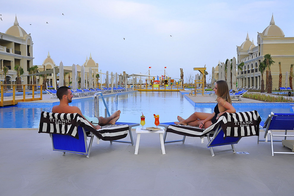 За пълноценния релакс на своите гости и за активния им отдих хотелът предлага анимация, тематични вечери, тенис на маса, фитнес, дартс, боча, аеробика, водна гимнастика, волейбол, баскетбол, мини голф, мини футбол, Wi-Fi. Аквапарк с 13 водни пързалки за деца, 30 водни пързалки могат да се ползват безплатно на територията на хотел Titanic Resort & Aqua Park, разположен на 200 метра от хотела. Срещу допълнително заплащане: СПА център, сауна, турска баня, парна баня, масаж, пилинг, джакузи, зона за релакс, фризьорски и козметичен салон, уроци по гмуркане, осветление и оборудване за тенис корт и мини голф, център за игри, боулинг, Playstation игри, въздушен хокей, билярд, водни спортове, химическо чистене, лекар, детегледачка, рент-а-кар. За децата има осигурени 2 басейна, водни пързалки, водни игри, детска площадка, мини диско, мини клуб (4-12 год.).