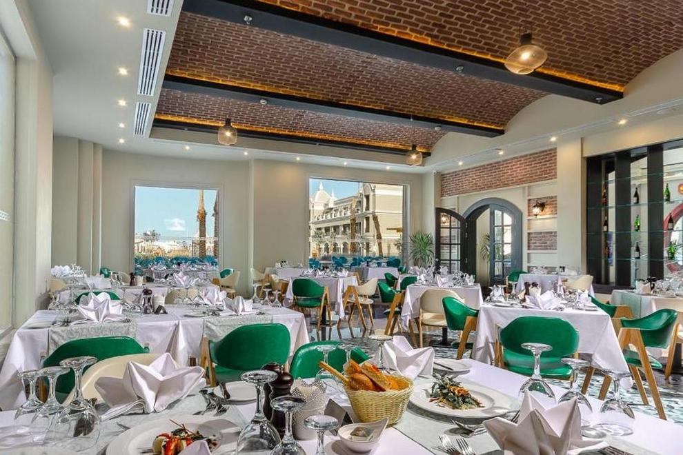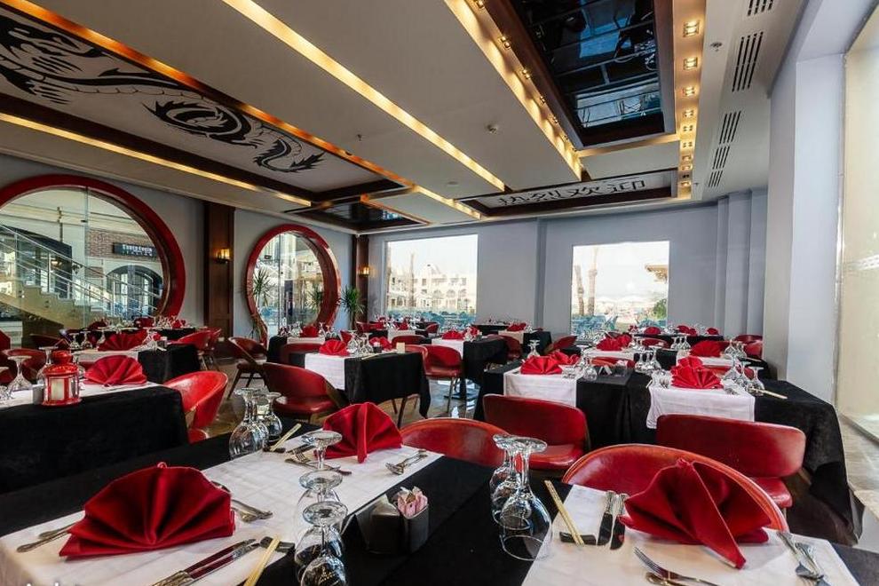 На разположение на гостите са основен ресторант и 4 а`ла карт ресторанта: италиански, монголски, китайски, гръцки), (с предварителна резервация и дрескод). Разнообразни освежаващи напитки се поднасят в 6 бара. Аll Inclusive концепцията включва закуска, обяд и вечеря на шведска маса, междинни хранения, местни алкохолни и безалкохолни напитки - без лимит (според концепцията на хотела).