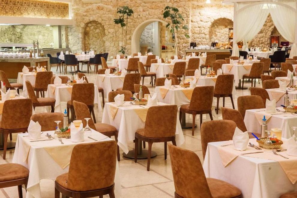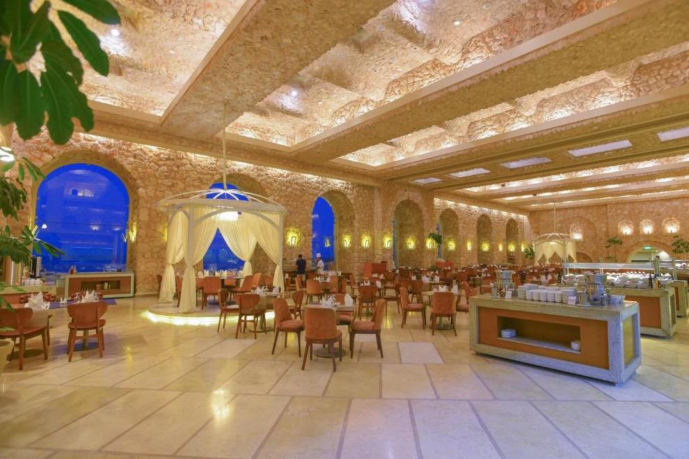 На разположение на гостите са 2 основни ресторанта и 4 а`ла карт ресторанта: интернационална кухня, италиански, ориенталски, азиатски. В 8-те бара се поднасят разнообразни топли и студени напитки, закуски в снек бара. All Inclusive - закуска, обяд и вечеря на блок маса, междинни хранения, алкохолни и безалкохолни напитки - без лимит (съгласно концепцията на хотела).