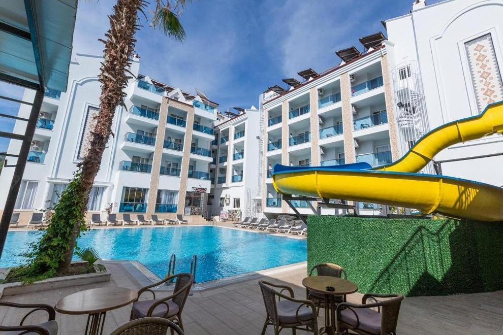 Популярният плаж на Мармарис е на 1,5 км от хотела. На разположение на гостите е басейн с водна пързалка и хидромасажна вана.