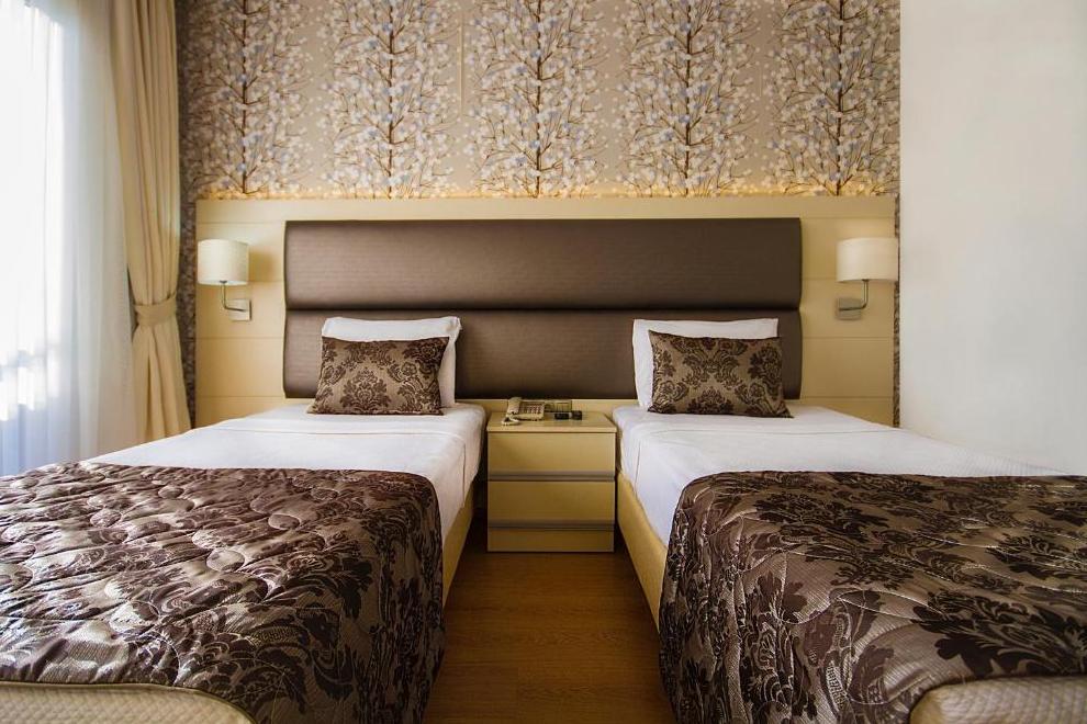 Хотелът посреща гостите си в 97 климатизирани стаи. Те са оборудвани с телевизор, телефон, минибар (платен), сейф (платен), баня с душ, сешоар, балкон. Почистване на стаите – всеки ден, смяна на спалното бельо и кърпите – 2 пъти в седмицата.