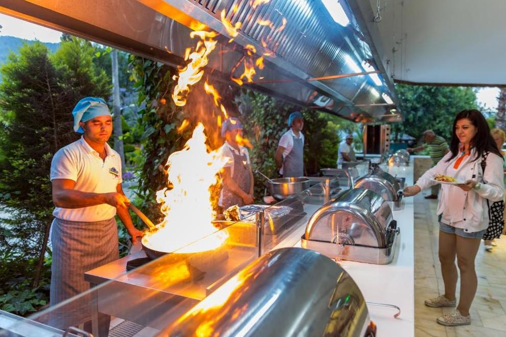 На разположение на гостите има основен ресторант и а`ла карт ресторант, в който се поднася европейска кухня. Освежаващи напитки се поднасят в 3 бара.