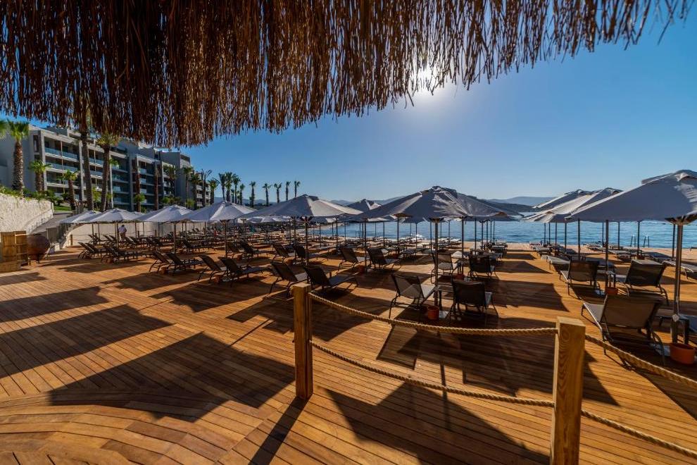 Хотелът има собствен плаж с платформа. На разположение на гостите има външен басейн.