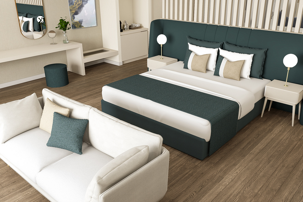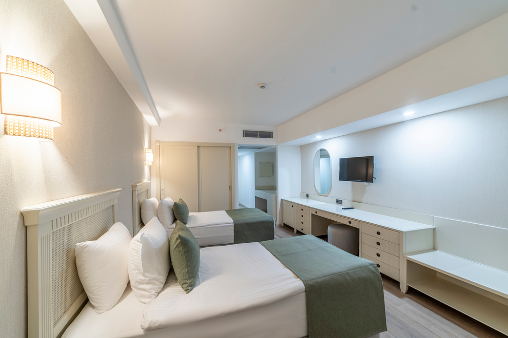 Хотелът се състои от 4 сгради - основна сграда Main Building, сграда Magnolia, 10 сгради Bougainville, сграда Petunia. Всички стаи имат климатик, телефон, телевизор, минибар, електронен сейф, сет за кафе/чай с електрическа кана, кафемашина в по-високите категории стаи, баня с душ/вана, тоалетни принадлежности, сешоар, балкон или тераса. Почистване на стаите - всеки ден, смяна на спално бельо - 2 пъти в седмицата.