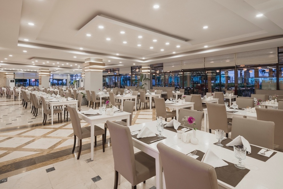 На разположение на гостите са основен ресторант и 5 а`ла карт ресторанта: турски, италиански, рибен, мексикански, азиатски. Освежаващи напитки и закуски се поднасят в 8 бара.