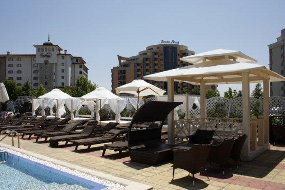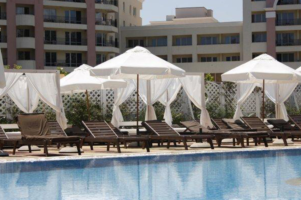 Плажът е само на 200 м. от хотела, който предлага удобството на открит басейн с детско отделение.