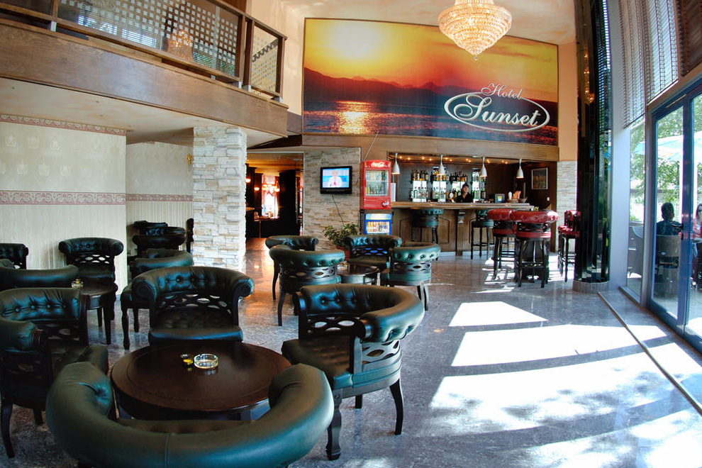 Елегантният ресторант в хотел Сънсет сервира разнообразие от традиционни български и европейски ястия. Има още лоби бар и бар край басейна. All Inclusive базата на изхранване включва: ресторант: закуска – 08:00-10:00ч., обяд – 12:30-14:00ч., вечеря – 16:00-17:00ч. Лоби бар: българско вино, наливна бира, безалкохолни напитки, кафе и чай – 10:30-22:30ч., български алкохолни напитки – 18:30-22:30ч. Бар при басейна: българско вино, наливна бира, безалкохолни напитки – 10:30-22:30ч., български алкохолни напитки – 18:30-22:30ч.