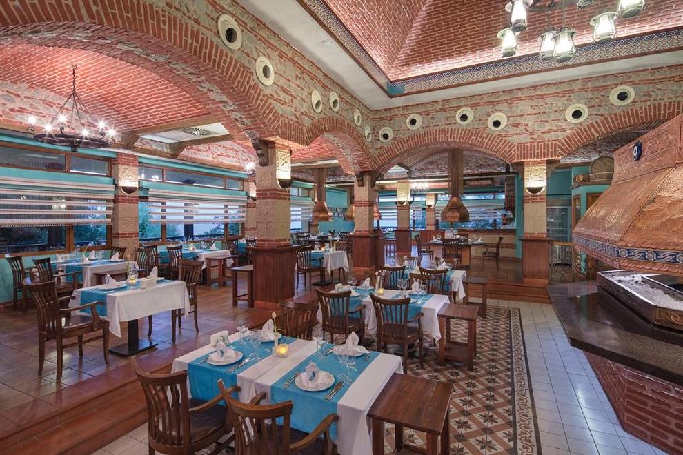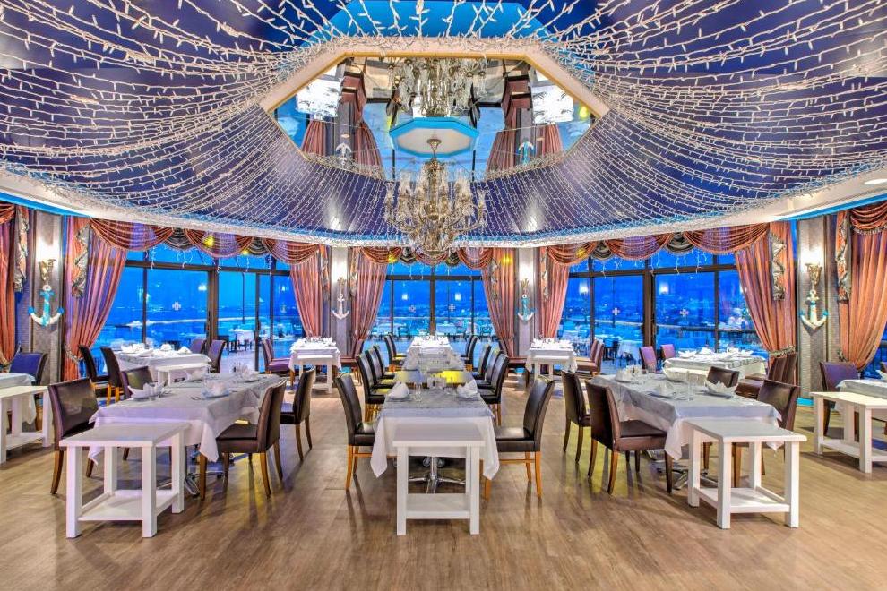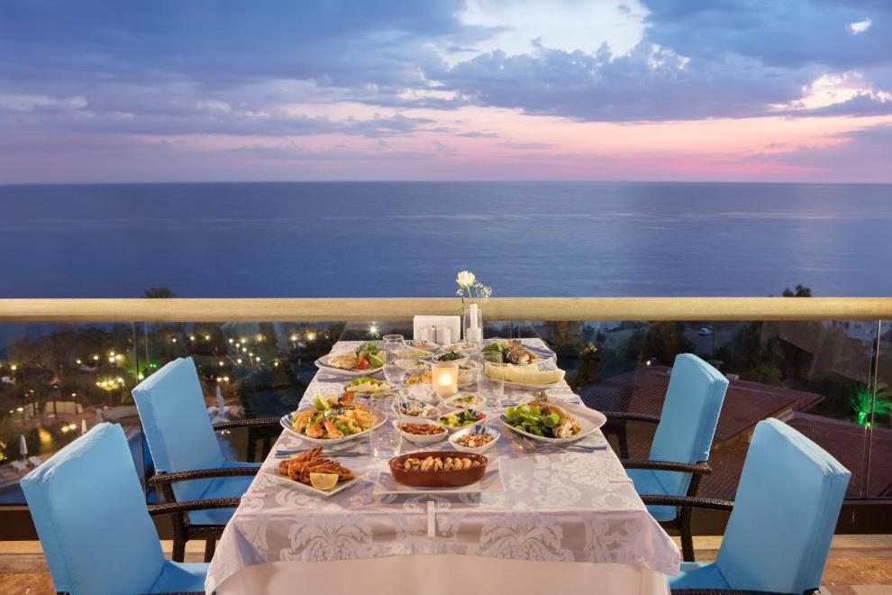 На разположение на гостите са основният ресторант Crystal restoran и а`ла карт ресторантите Lambusa, в който се приготвят морски деликатеси и Ottoman Kebab house. Освежаващи напитки се поднасят в Lobby bar, Pool bar, Beach bar, Hookah bar, Scala bar и Sweet home.