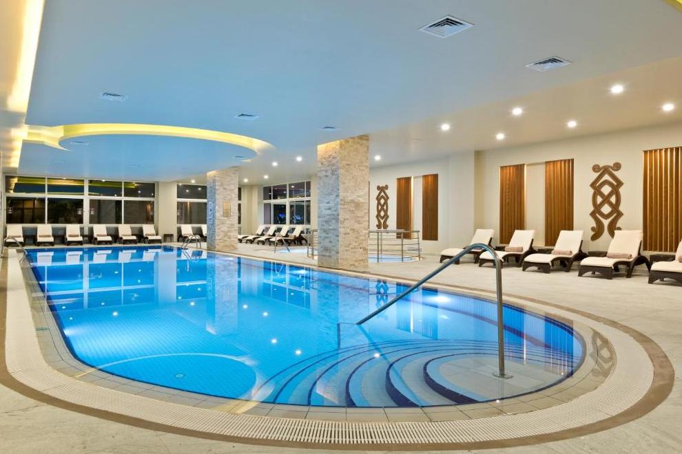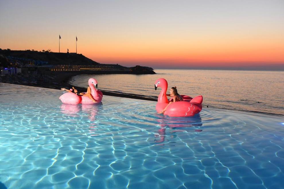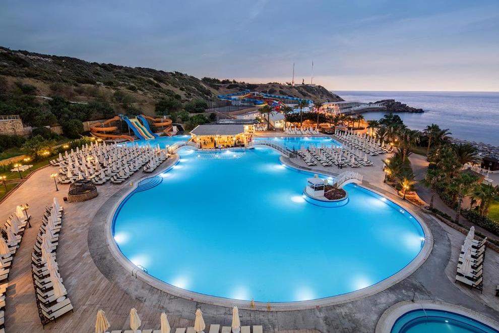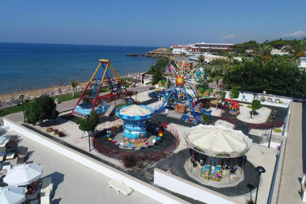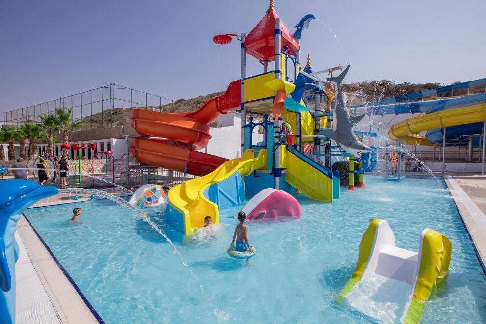 Хотелът разполага със собствен пясъчен плаж, 3 открити басейна (1 основен, 1 инфинити само за възрастни и 1 за деца), аква парк с 24 пързалки, 6 от които за деца и 18 за възрастни.