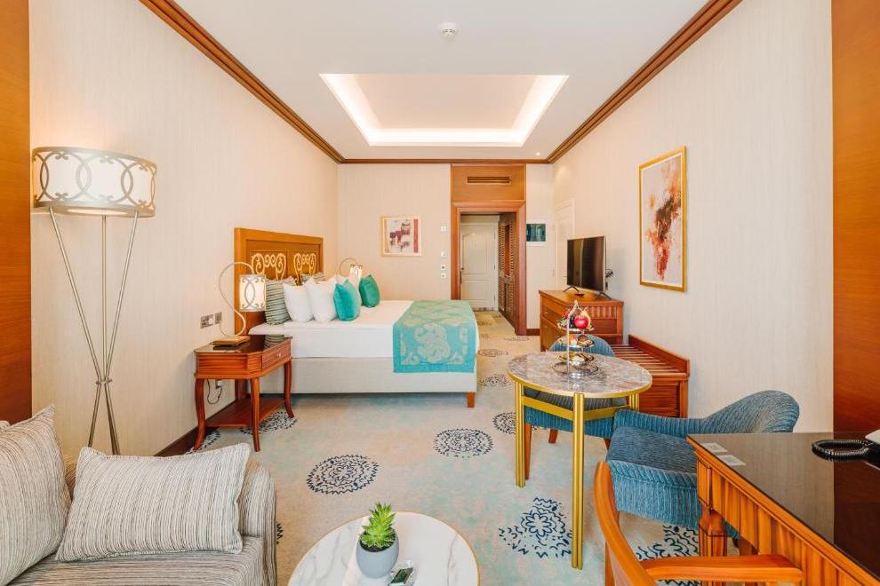 Хотелът посреща гостите си в 90 климатизирани стаи, които разполагат с телефон, телевизор, минибар, сейф, сет за чай/кафе, самостоятелна баня. Ежедневно почистване на стаите.