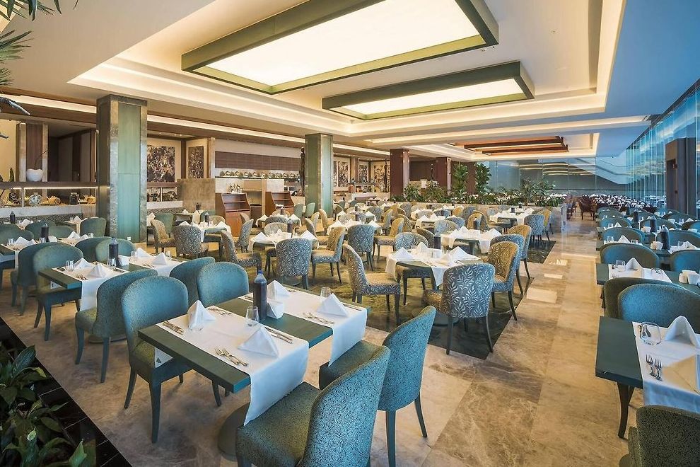 На разположение на гостите са 3 ресторанта – основен ресторант The Buffet, а`ла карт ресторанти: Agora за морска храна и Sanzino за италианска кухня. В бистро La Petite Patisserie се предлагат кафе, топли напитки и сладкиши.
