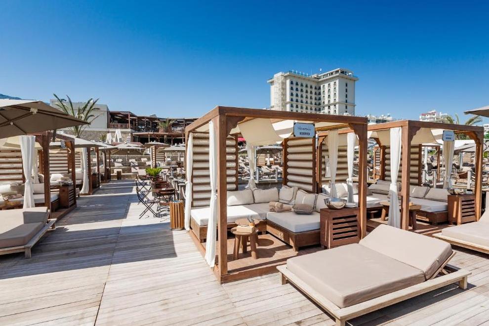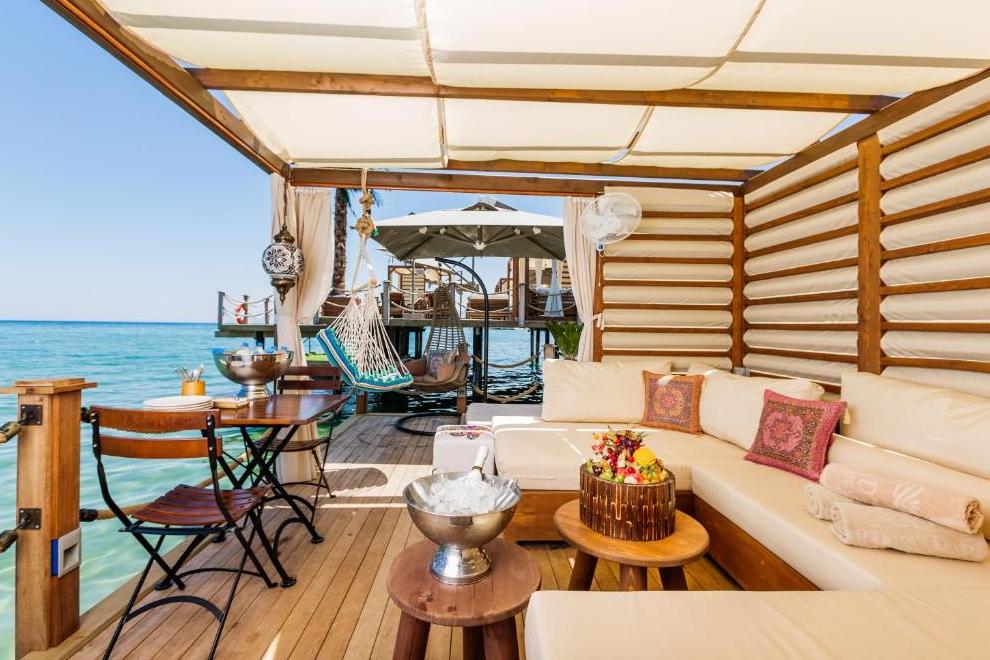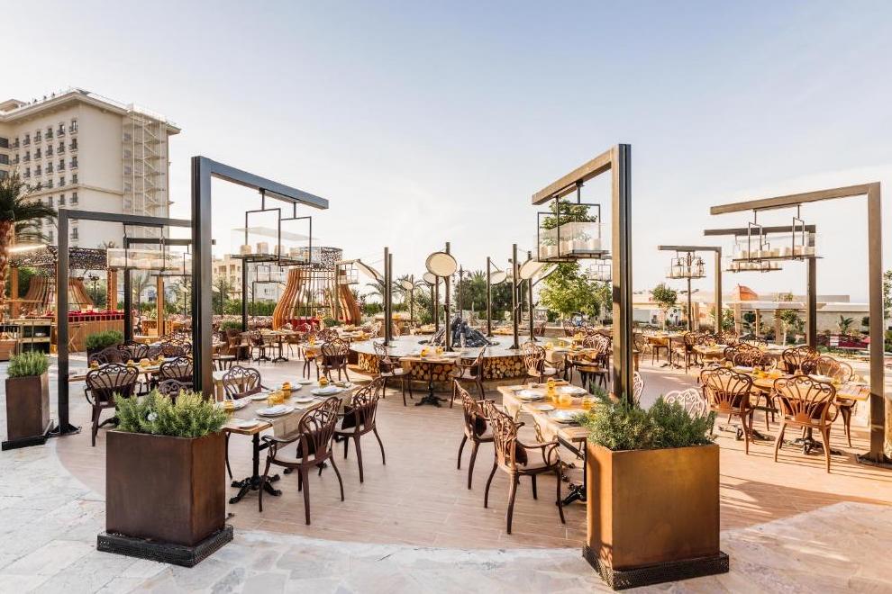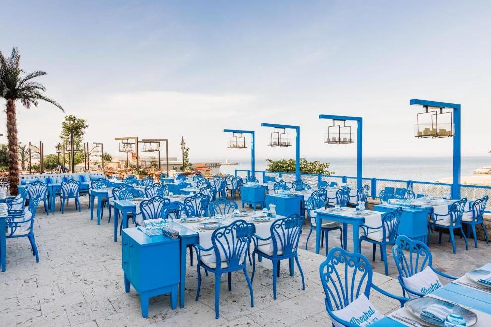 На разположение на гостите има основен ресторант, кафене, бар и бар на плажа.