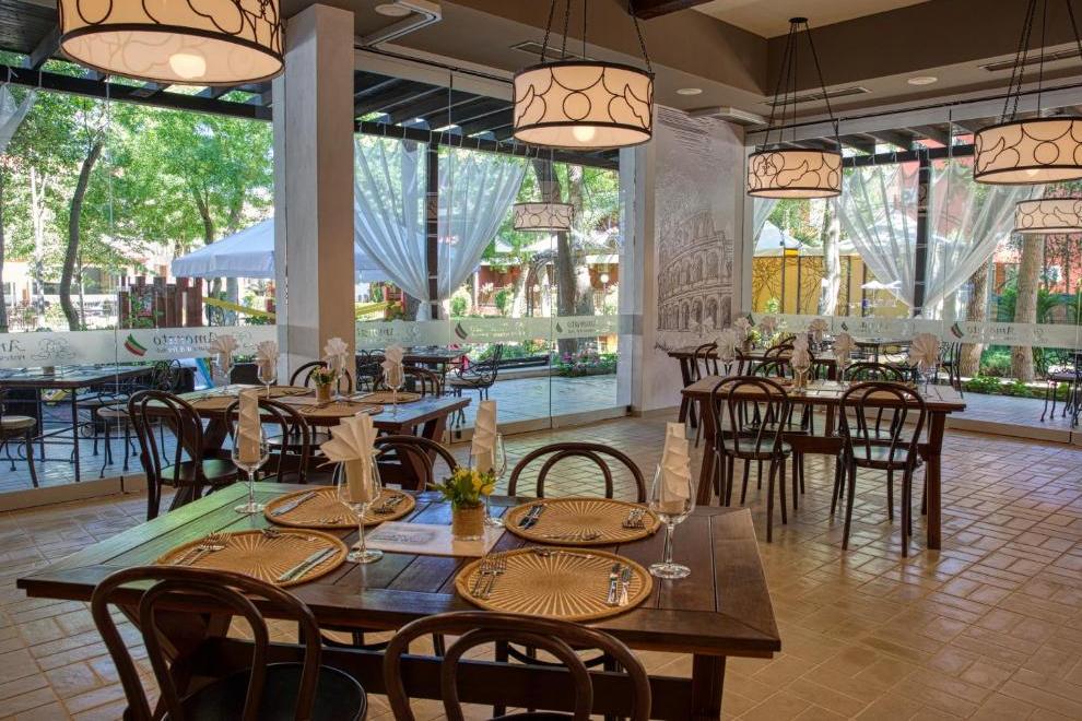 На разположение на гостите е просторен основен ресторант с вътрешна, климатизирана зала и външна тераса. А`ла карт ресторанти: Captain Black Sea (рибен ресторант) и Amorato (италианска кухня). Снек бар, бар “The living room” и павилион на плажа.