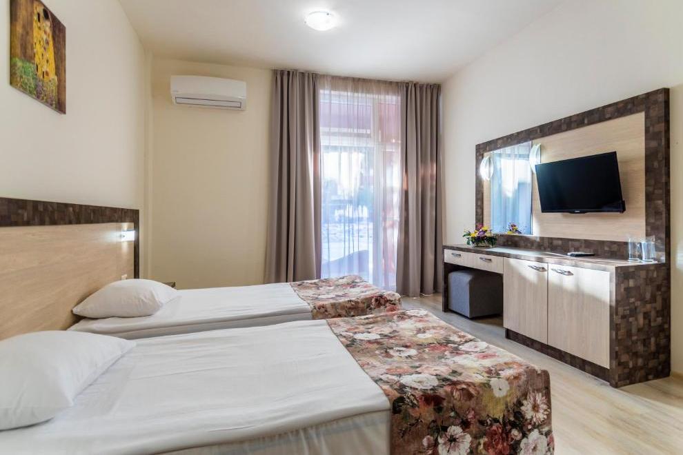 Хотелът се състои от пет корпуса, в които са разпределени двойни стаи, джуниър сюитове, фамилни стаи. Те са оборудвани с телевизор, телефон, минибар, сет за чай/кафе, самостоятелна баня.