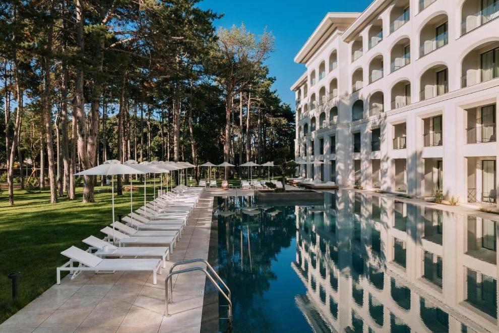 Този хотел, построен през 2022 г., се намира на 50 м от плажа, след борова гора, в курорта Св. св. Константин и Елена. Град варна отстои на 8 км от хотела.