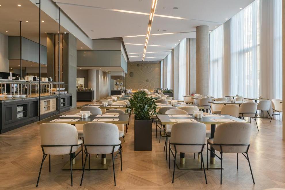 Хотелът има основен ресторант - THE TERRACE RESTAURANT, на разположение на гостите са още GREEN RESTAURANT (само за възрастни), а`ла карт ресторант KAMPAI, в който се поднася азиатска кухня, и The GRILL (в градината). Освежаващи напитки се поднасят в 5 бара – Лоби бар, бар-басейн Alibabki, бар на плажа, Витамин бар – в СПА центъра, Сладоледен бар – до детската зона в градината.