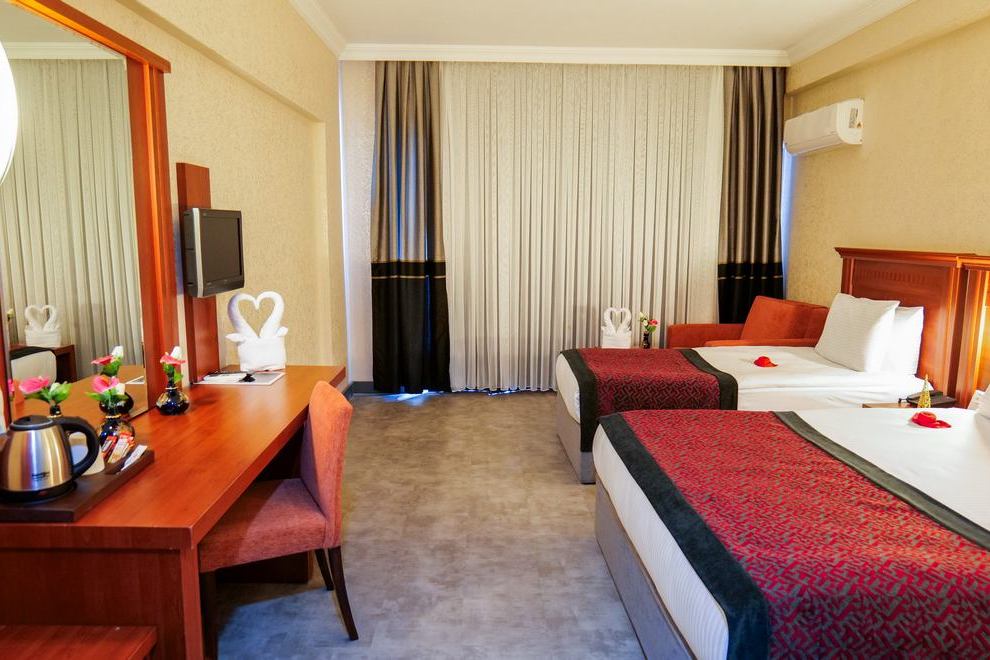 Хотелът се състои от един 6-етажен корпус, в който са разпределени 350 климатизирани стаи. Те са оборудвани с телевизор, телефон, минибар, сейф, самостоятелна баня с душ/вана, балкон, Wi-Fi (безплатно). Ежедневно почистване на стаите.