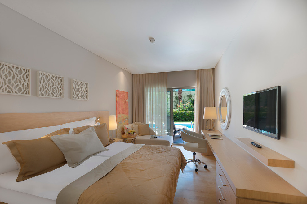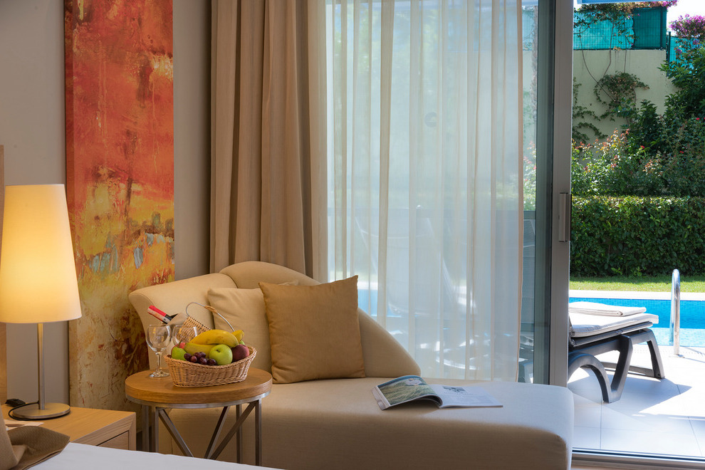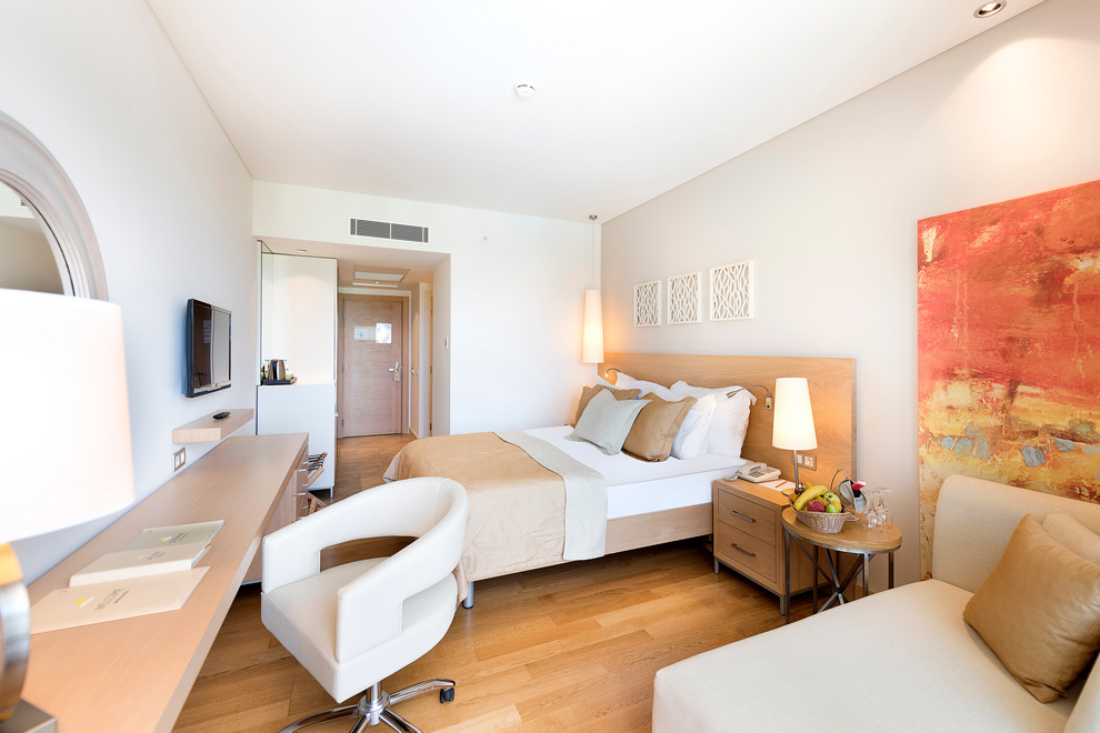 Хотелът посреща гостите си в 139 климатизирани стаи, от които 110 Standard room (28 кв.м), 14 Swim Up room (с достъп до общ басейн - 28 кв.м), 5 Junior Suite (40 кв.м), Jacuzzi Suite (с джакузи - 45 кв.м), 2 Handicapped room (стая за инвалиди - 28 кв.м), 3 Economy Room (без балкон - 22 кв.м). Стаите са оборудвани с телефон, телевизор, минибар, сет за кафе/чай, сейф, баня с душ/вана, сешоар, чехли, Wi-Fi, балкон. Почистване на стаите – всеки ден, смяна на бельото и кърпите – 3 пъти в седмицата.