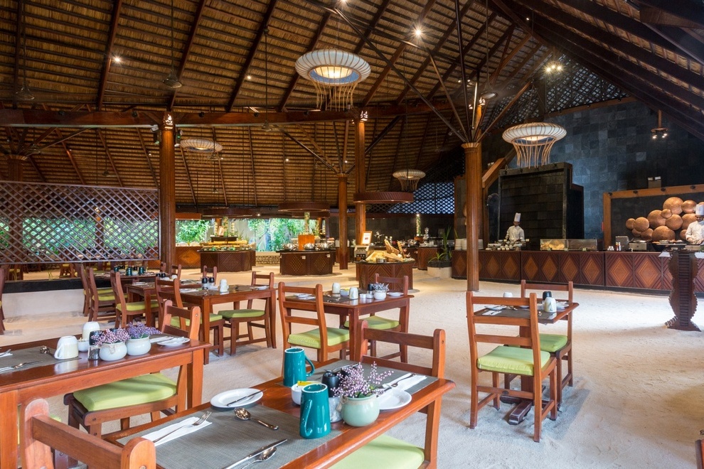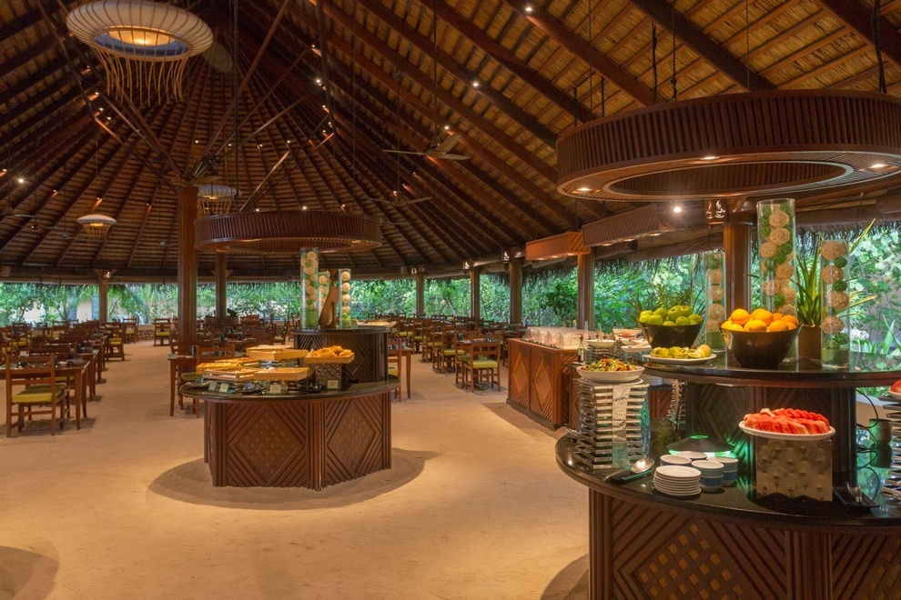 На разположение на гостите са основен ресторант, а`ла карт ресторант Franco’s, където се поднася средиземноморска кухня, пица, бургери и сандвичи. Освежаващи напитки се поднасят в Akiri Bar на плажа, Babuna Bar, Raalhu Bar, Sai Kotari, Sangu Bar, Sangu Wine Cellar, ‘O’ Bar, Golf Bar, Bulleit Bar.