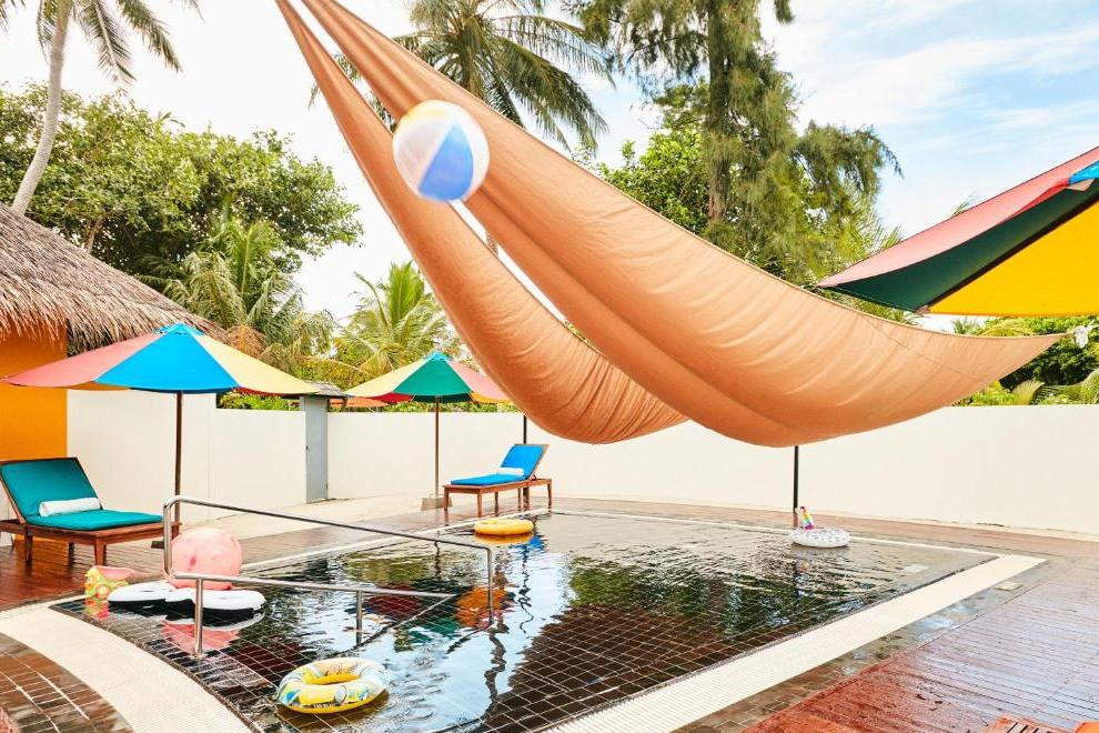 Хотелът е разположен на атола Нууну и се състои от комплекс от великолепни вили, където модерната архитектура се съчетава с традиционен малдивски дизайн. Вилите са разположени сред буйна растителност по плажа и във вътрешността, както и на кокили над водата в лагуната. Хотелът разполага със собствен коралов риф. Трансфер летище - хотел - летище с хидроплан.