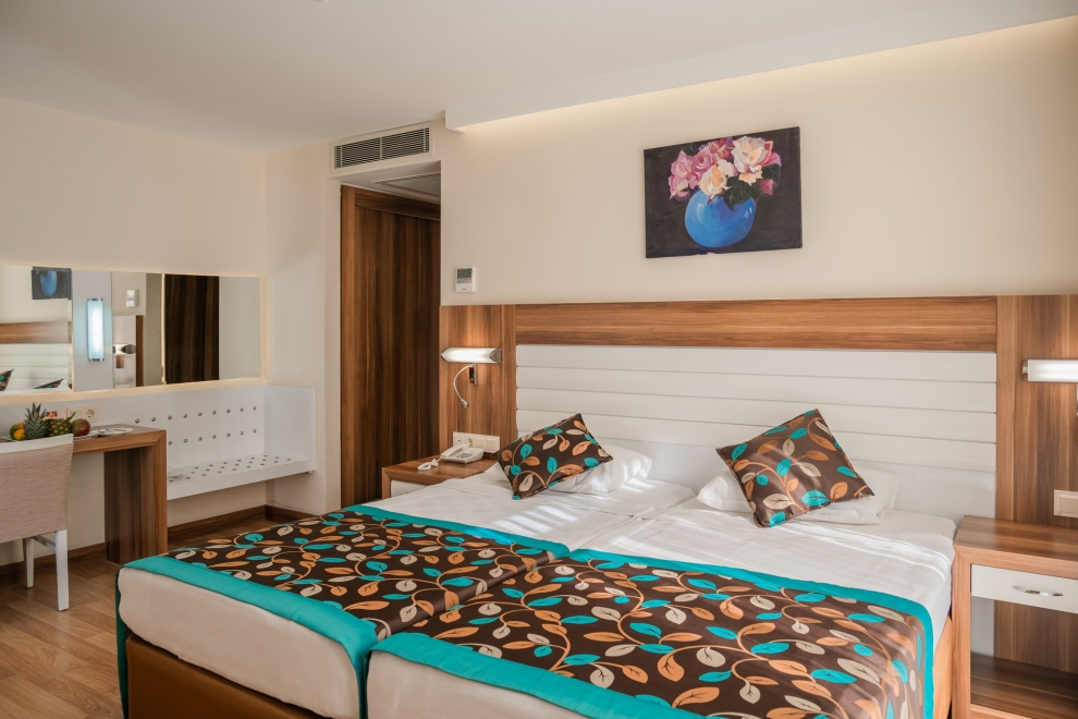 Всички стаи са оборудвани с климатик, телефон с директно набиране, сейф, минибар (зареден с безалкохолни напитки и вода при пристигане, в следващите дни се зарежда само с вода), баня с душ, тоалетни принадлежности, сешоар, безжичен интернет, балкон или тераса.