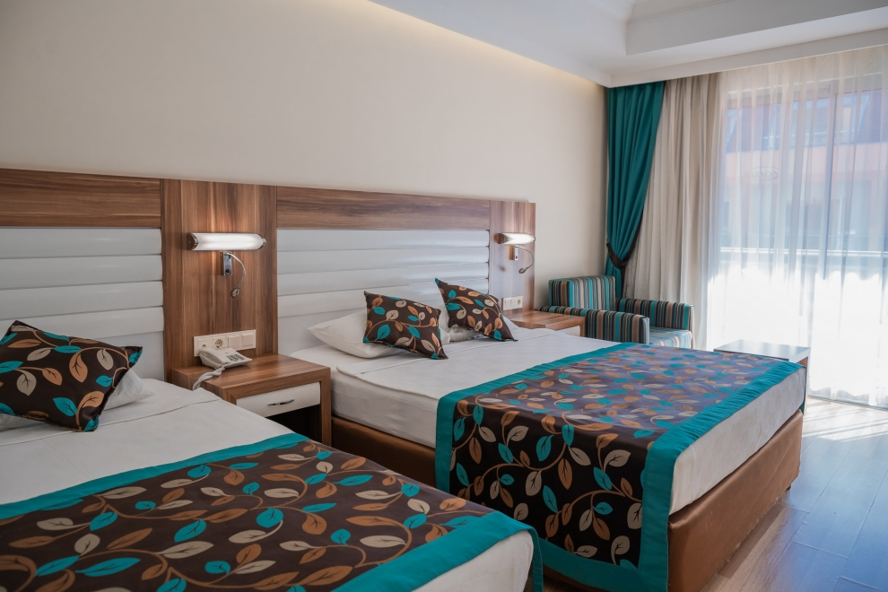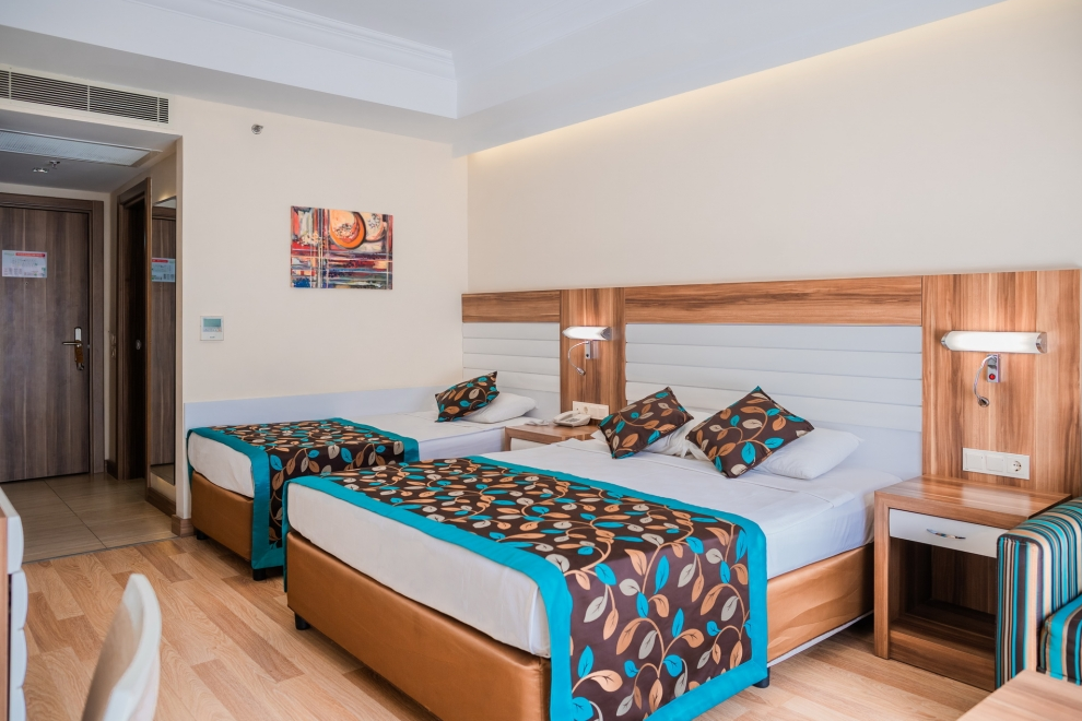 Standard Room с 1 двойно и 1 единично легло + диван, площ 22 кв.м, максимално настаняване 2+2 деца или 3+1 дете.