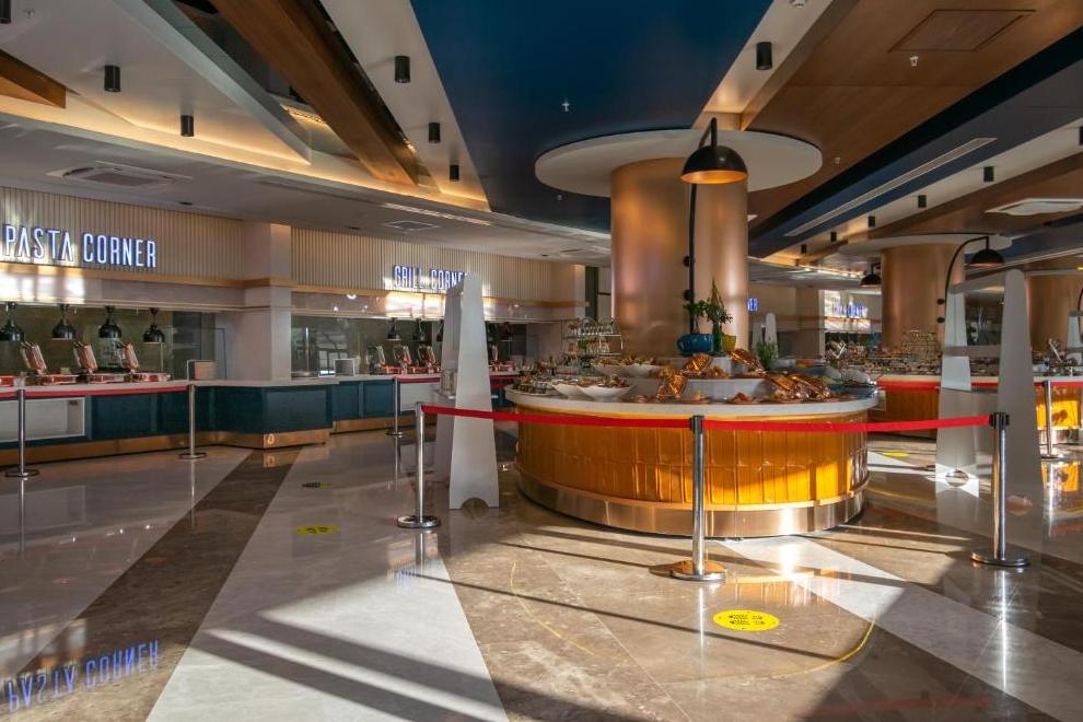 На разположение на гостите има основен ресторант с диетично меню, 3 а`ла карт ресторанта: международен, турски, италиански. Освежаващи напитки се поднасят в лоби бар, бийч бар, сладкарница,
