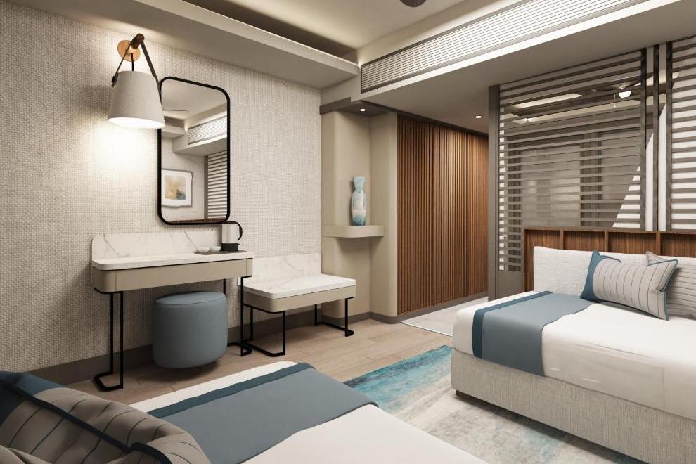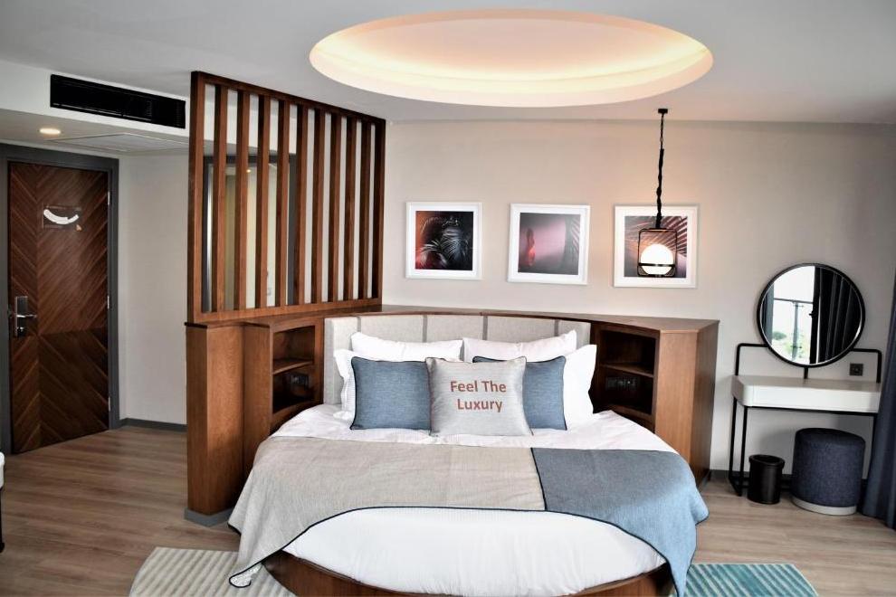 Хотелът с състои от една 9-етажна сграда (6 асансьора), в която са разпределени 365 климатизирани стаи: Standard Land View ( 35-40 кв.м), Standard Side Sea View (35-40 кв.м), Standard Sea View (35-40 кв.м), Standard Sea&Pool View (35-40 кв.м), Standard Swim up ( 35-40 кв.м), Standard Deluxe (38 кв.м), Family with 1 Bathroom (40 кв.м), Family with 2 Bathroom ( 50 кв.м). Всички стаи са оборудвани с телефон, LCD телевизор, минибар, сет за кафе/чай, сейф, сешоар, баня с душ, чехли и халат, балкон.