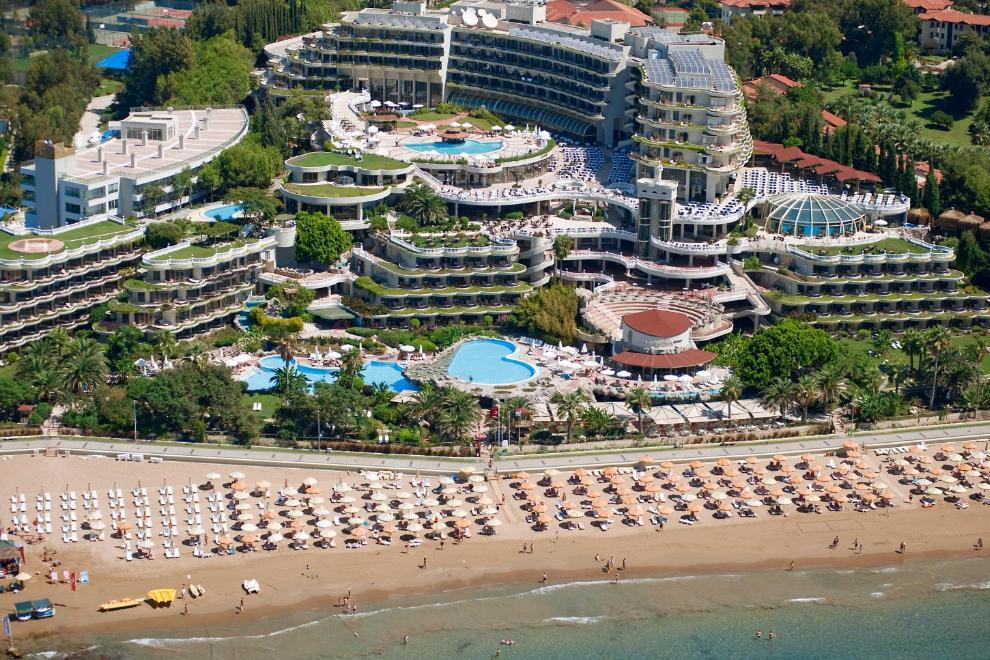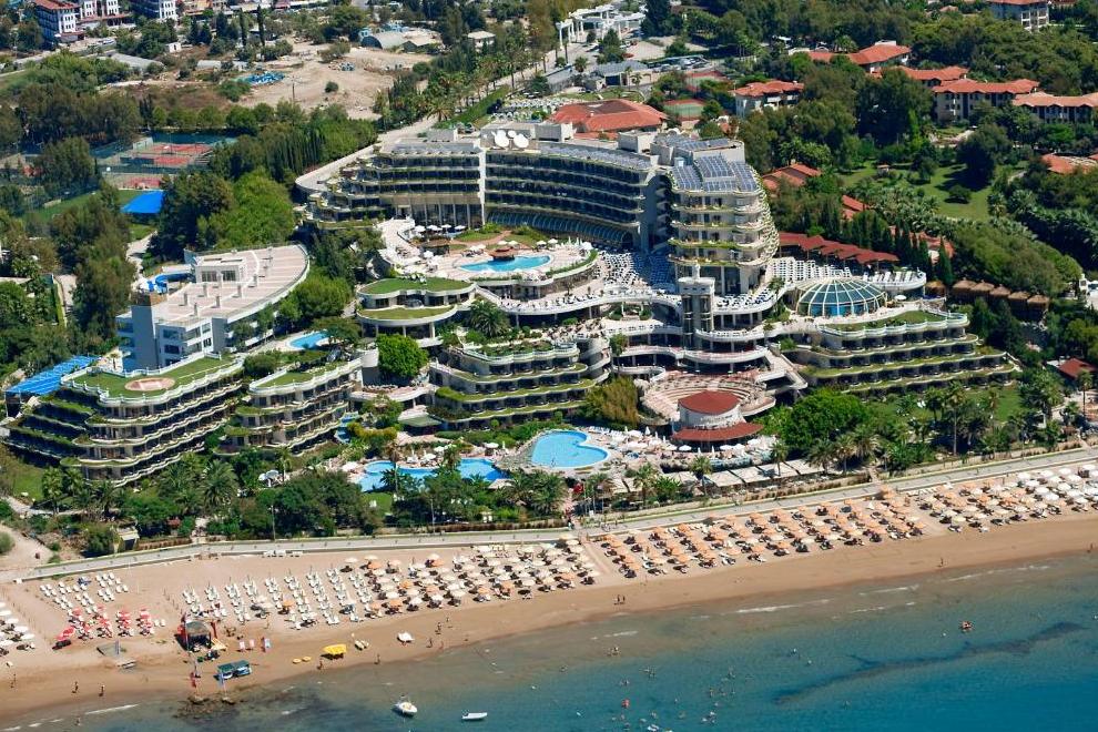 Хотелът разполага със собствен пясъчен плаж, където има безплатен бар. Има също 6 открити басейна, закрит басейн, аквапарк с 5 пързалки. На плажа и при басейна чадъри, шезлонги, матраци, плажни кърпи се предоставят безплатно.