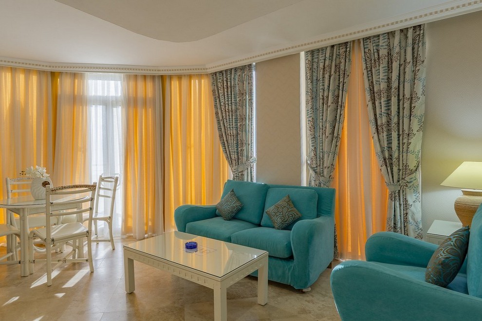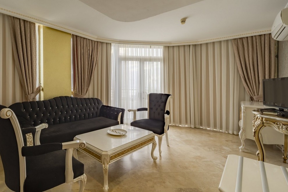 Всички стаи са климатизирани и включват плоскоекранен телевизор, добре зареден мини бар (вода и безалкохолни напитки се зареждат ежедневно, безплатно) и кът за сядане с удобно канапе. Безплатен WiFi. Има още баня с душ или вана, сешоар, централен климатик, телефон, сейф (безплатно), подът е ламинат, балкон (с изключение на 4 от стандартните стаи). Стаите се почистват ежедневно, спалното бельо се сменя всеки ден. Room service (от 02:00 ч. до 06:00 ч. - безплатно), безжичен интернет (до 56 KB - безплатно).