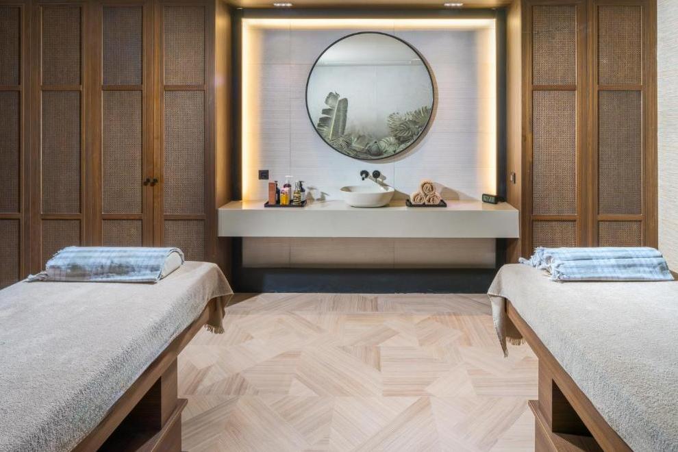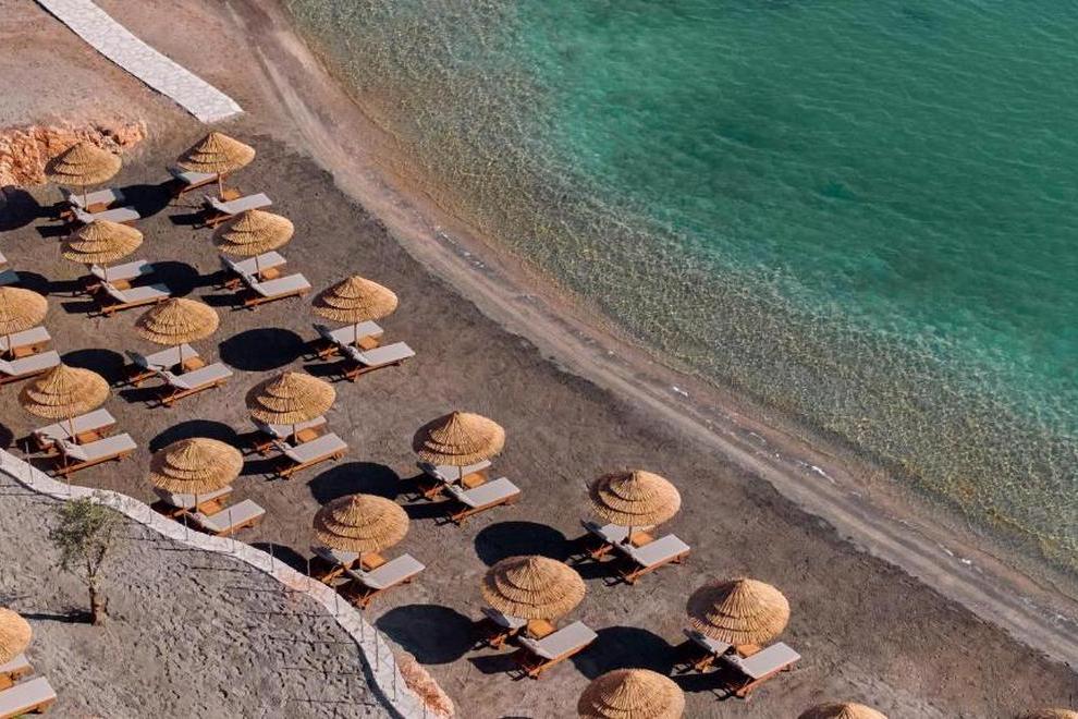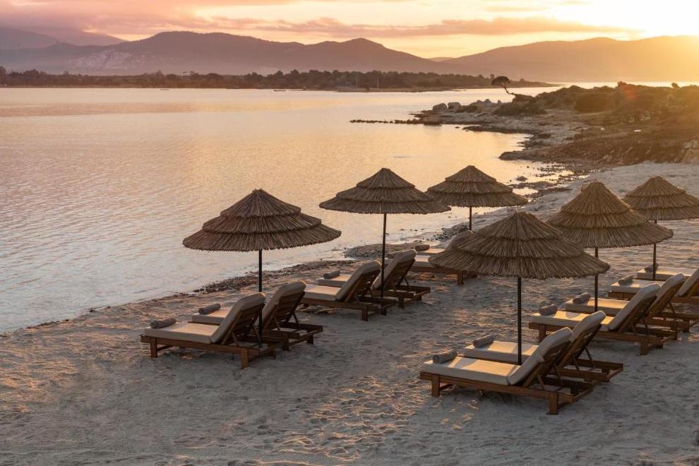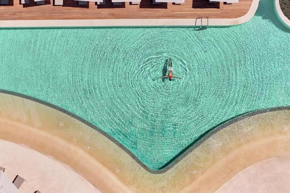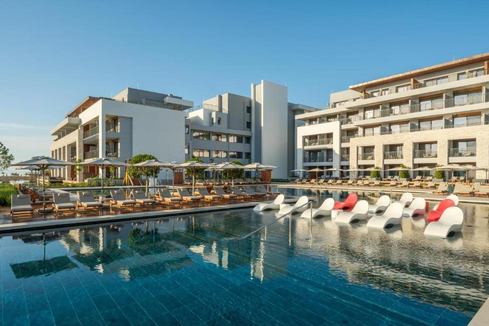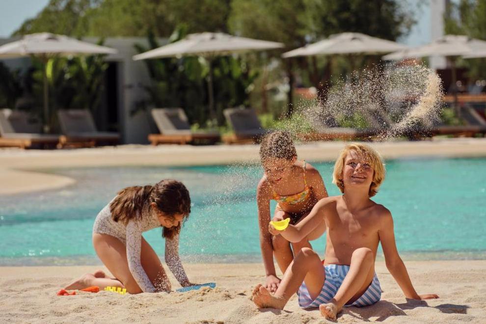 Собствен пясъчен плаж с платформа. На разположение на гостите са 10 басейна, два от които са вътрешни, отoпляеми в зависимост от сезонните условия, и 1 басейн с морска вода. Чадъри, шезлонги, матраци и плажни кърпи на плажа и при басейна се ползват безплатно.