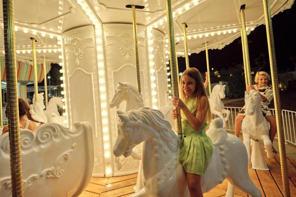 За децата има детски бюфет (в основния ресторант - за закуска, обяд и вечеря), открита площадка за игра, детски басейни, миниклуб (4-12 год.), тийнклуб (13-16 год., само през летния сезон), стая за сън, стая за игри, кино, 2 люлки, мини футболно поле, PlayStation, пускане на хвърчила, пяна парти, тематичен вечерен панаир, мини диско.